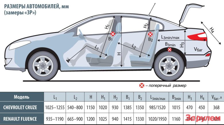Chevrolet cruze габариты