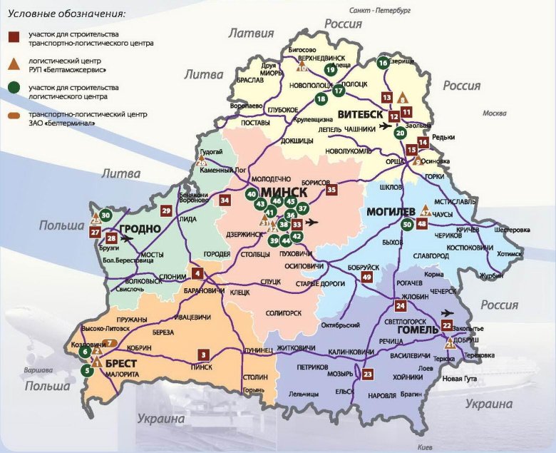 Карта белоруссии с железнодорожными путями