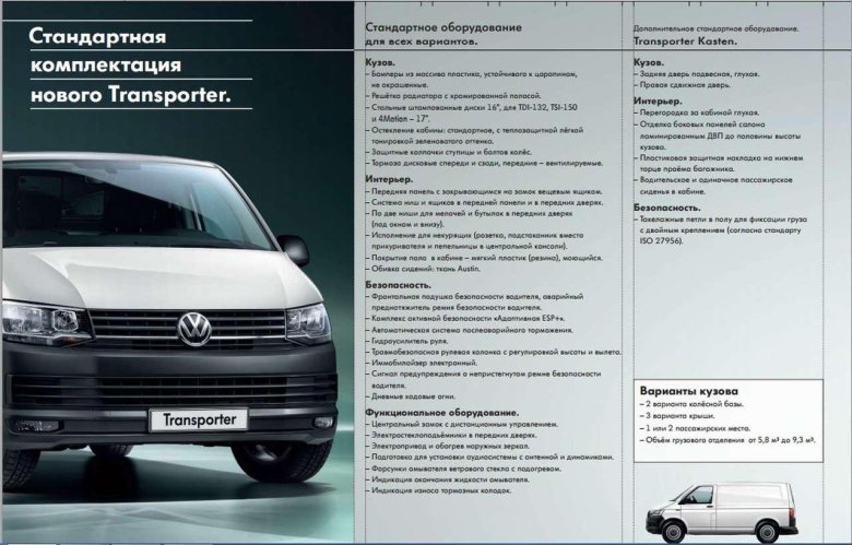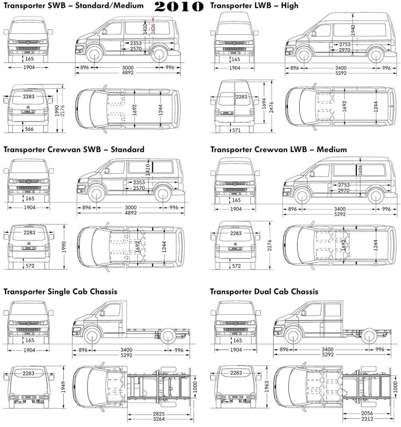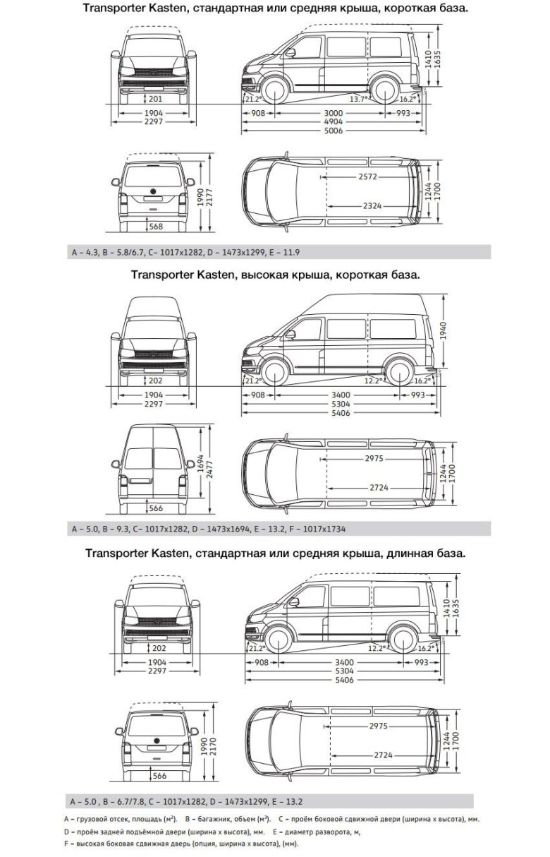 Габариты фольксваген транспортер т 5