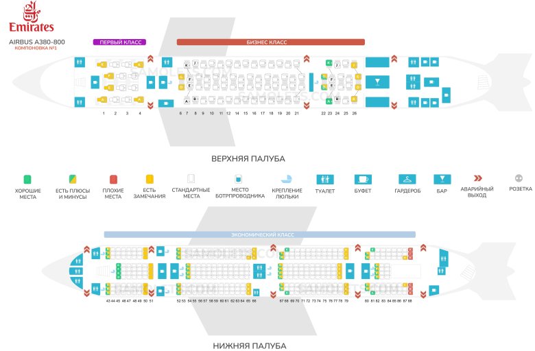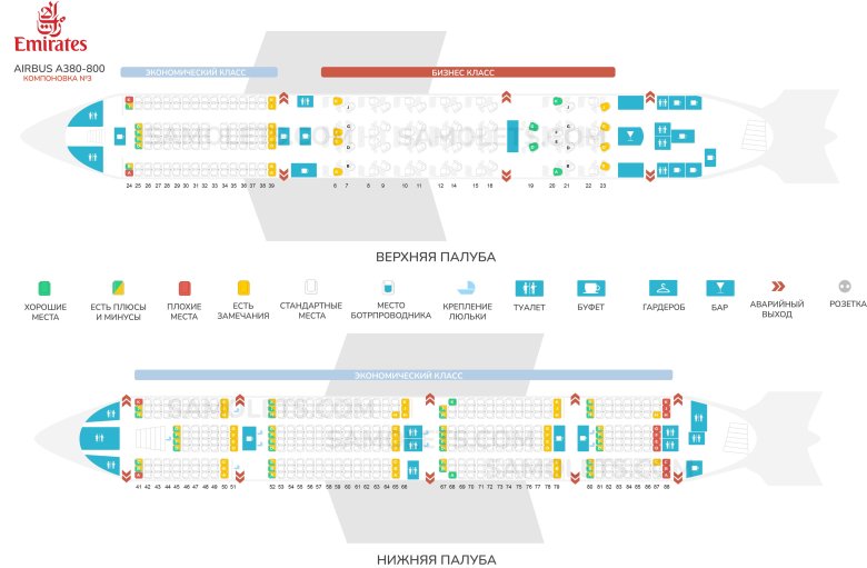 Аэробус а380-800 эмирейтс расположение мест