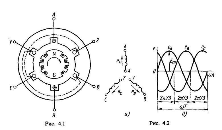 Трёхфазная система эдс. схема трёхфазного генератора
