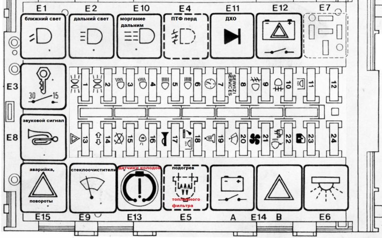 Схема блока предохранителей
