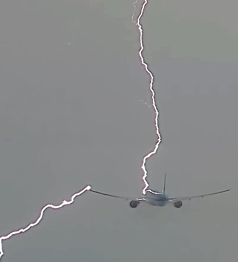 Удар молнии в самолет