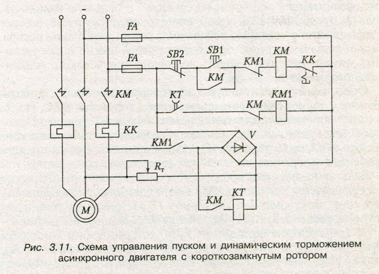 Схема динамического торможения асинхронного двигателя