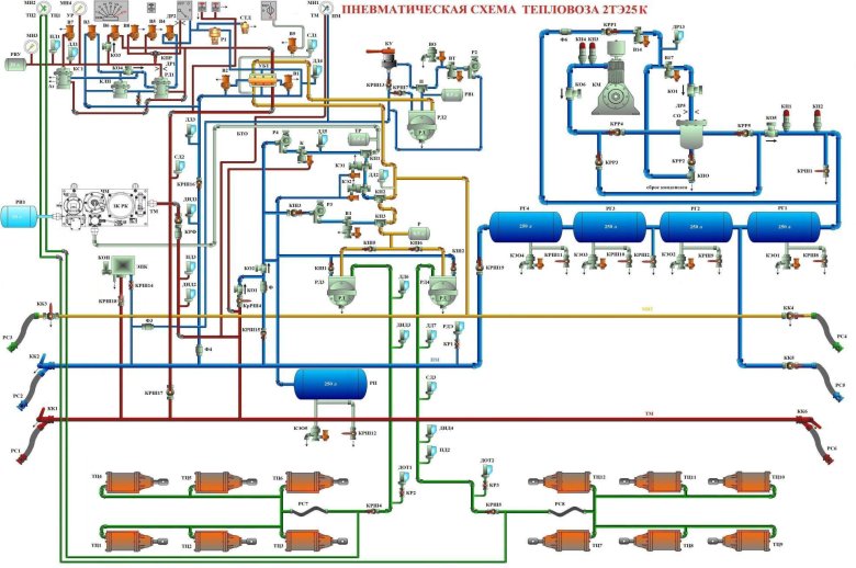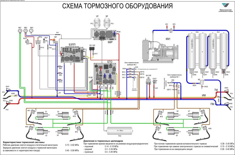 Схема тормозного оборудования тепловоза чмэ3
