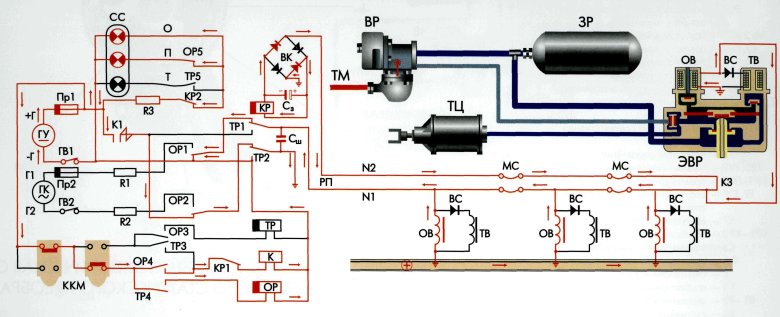 Схема тормозного электропневматического оборудования