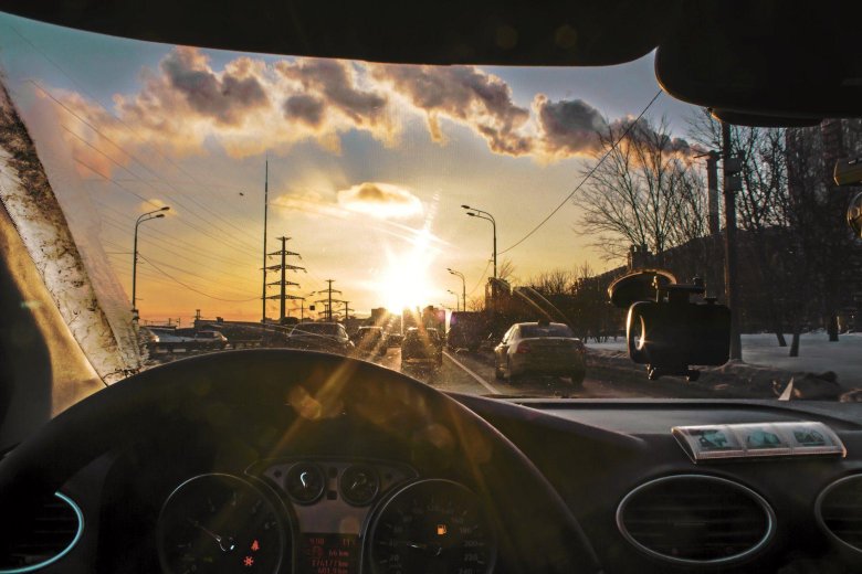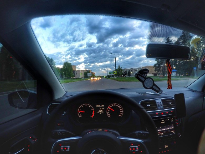Вид из лобового стекла машины