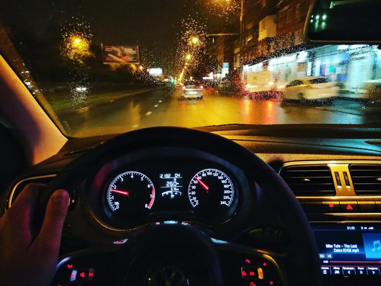 Салон машины ночью