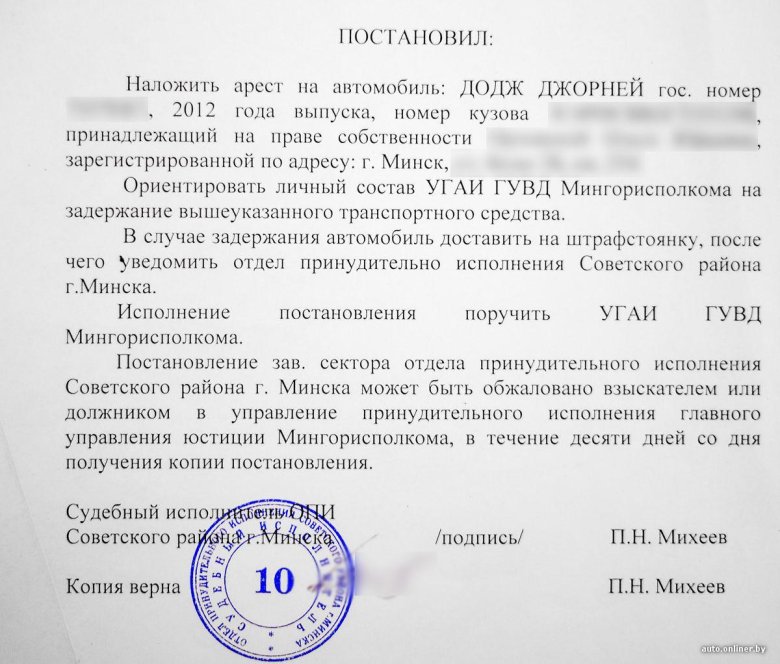 Арест автомобиля судебными приставами