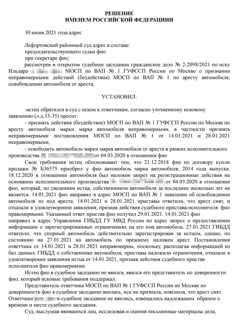 Автомобиль арестован