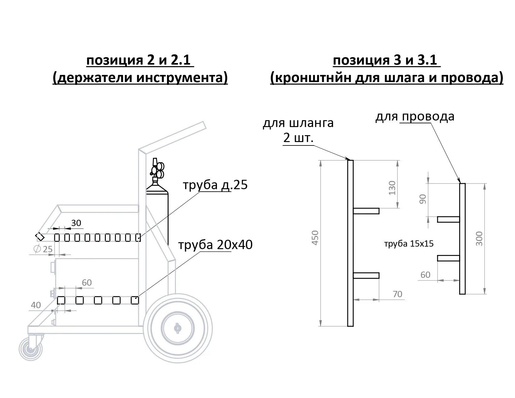 Сварочная тележка для полуавтомата чертеж с размерами