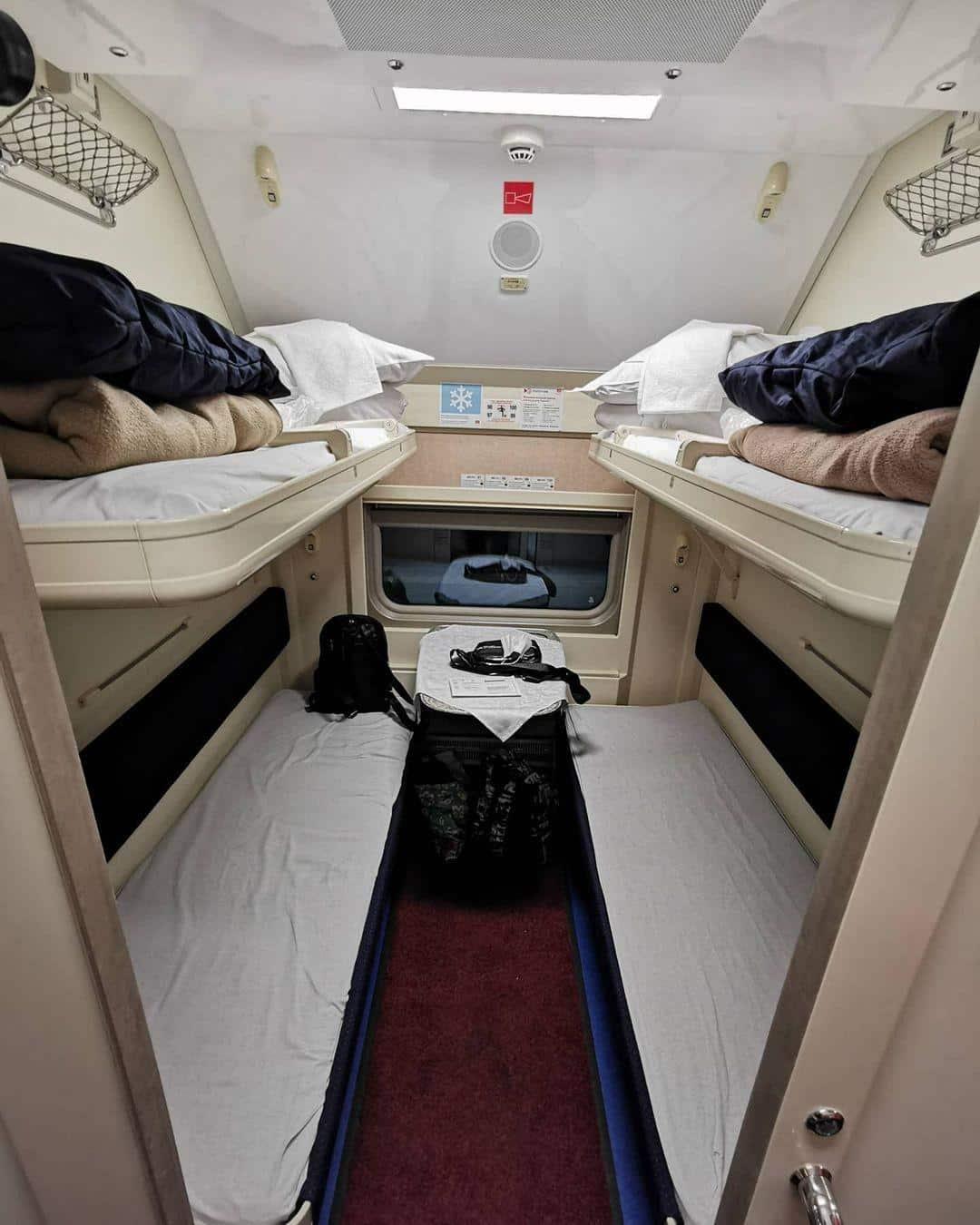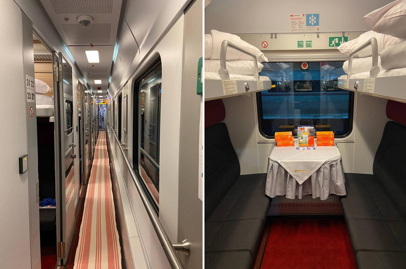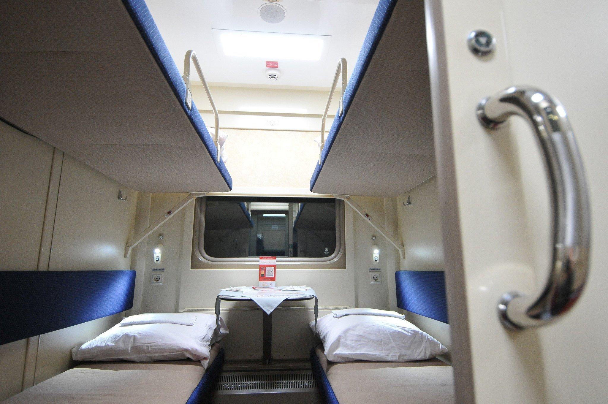 Купе в двухэтажном поезде РЖД 2022