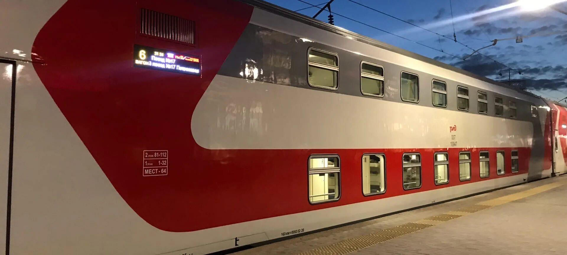 Двухэтажный поезд РЖД Санкт-Петербург Белгород