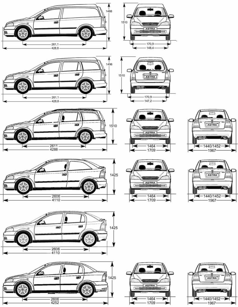 Opel astra h универсал габариты