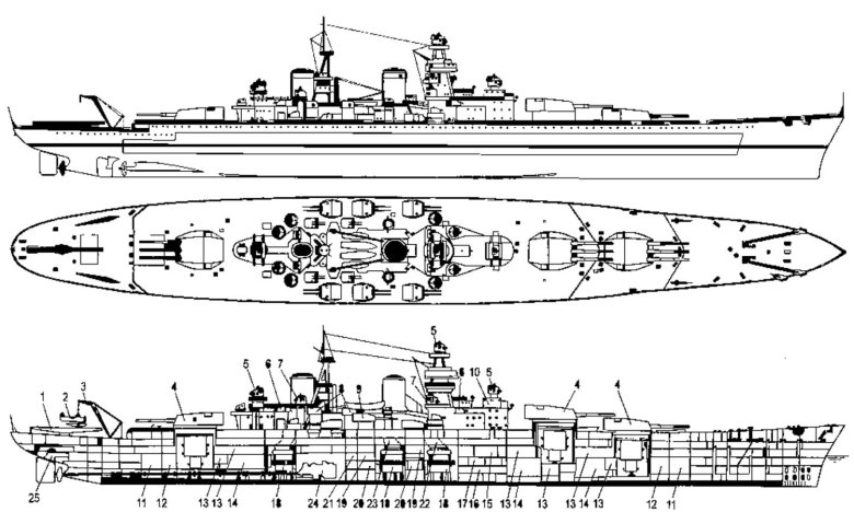 Линкор бисмарк чертежи