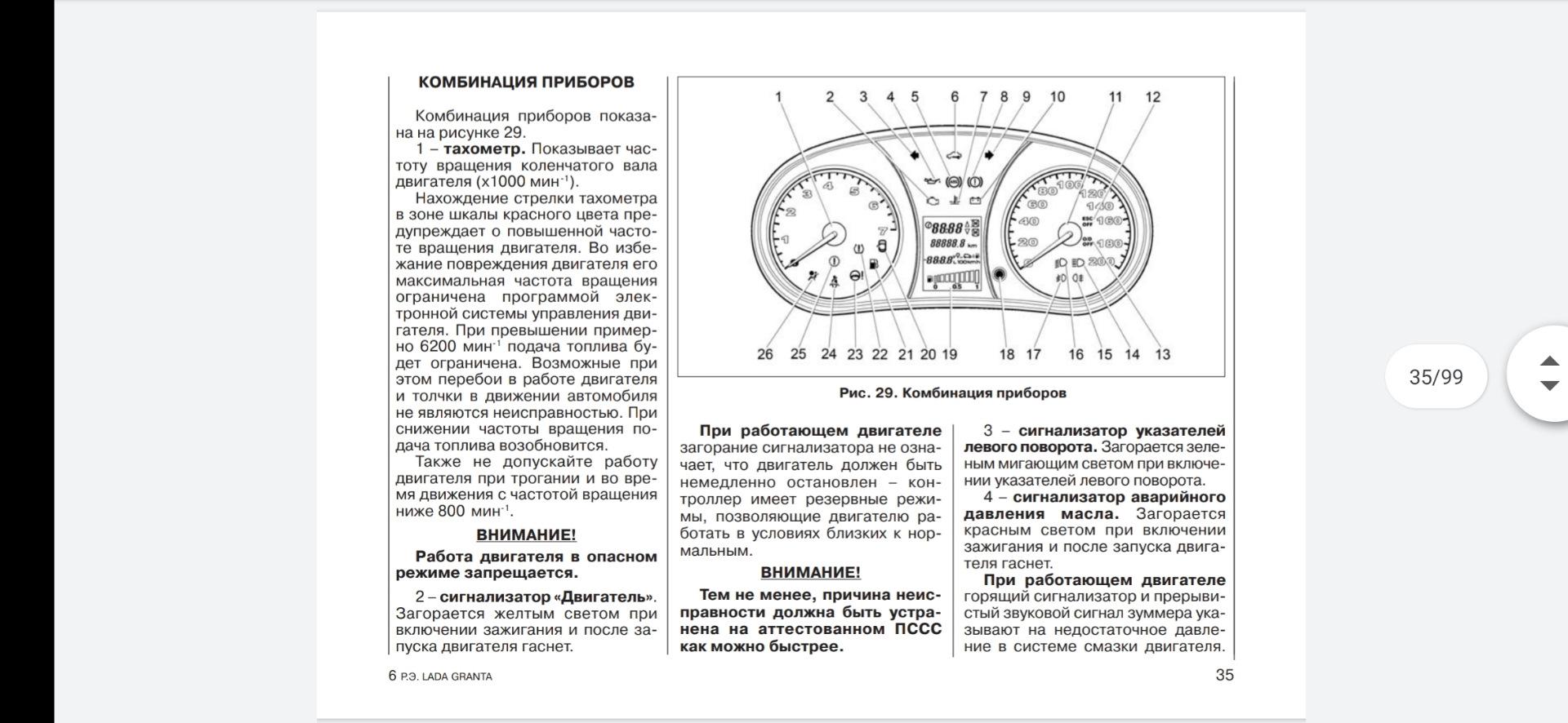 Значки на панели приборов Лада Гранта