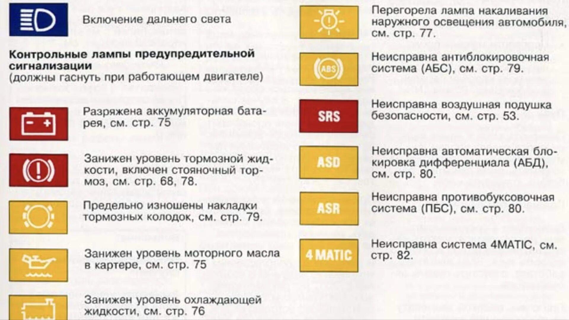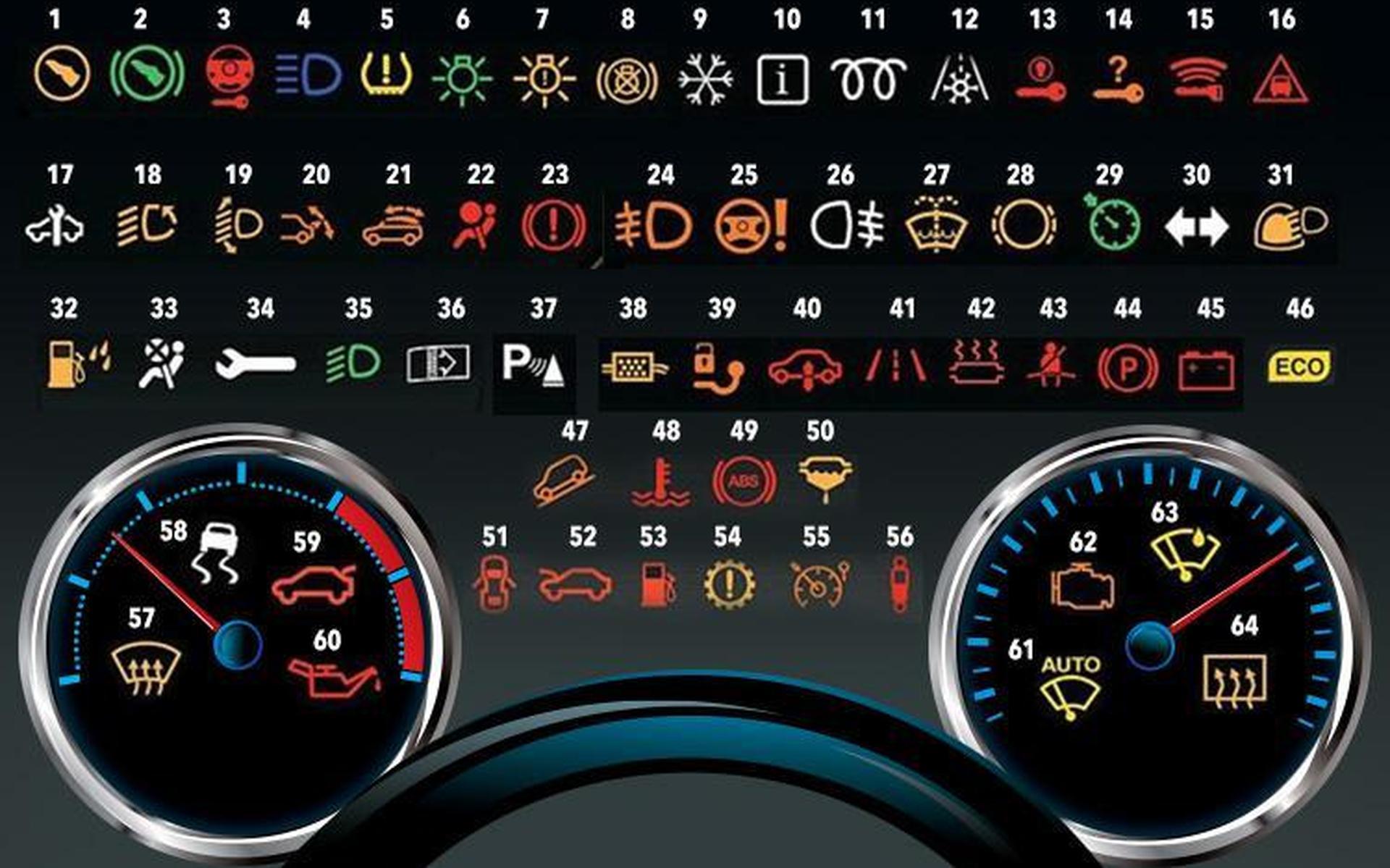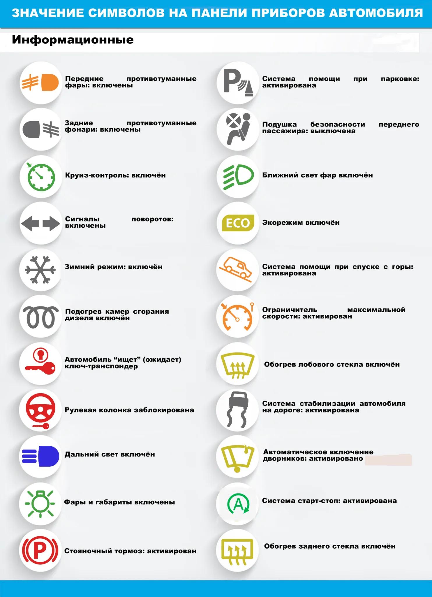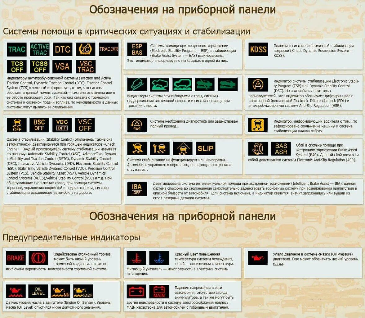 Знаки на панели приборов