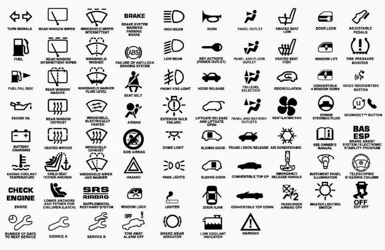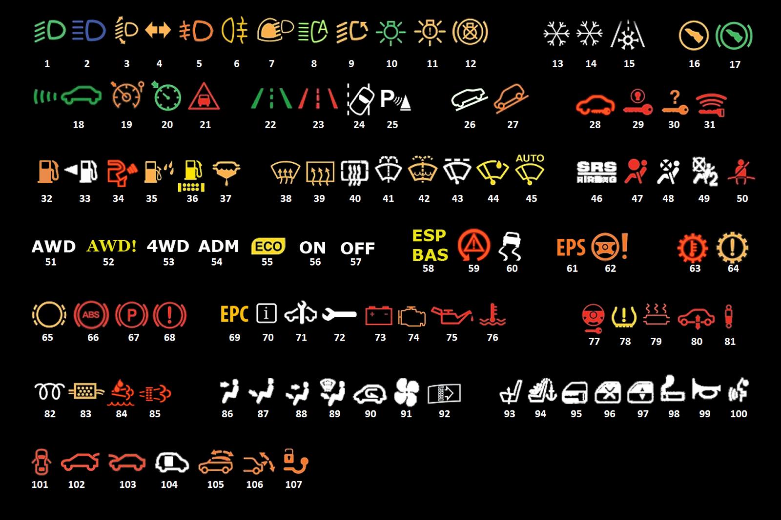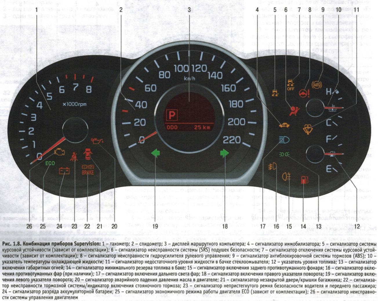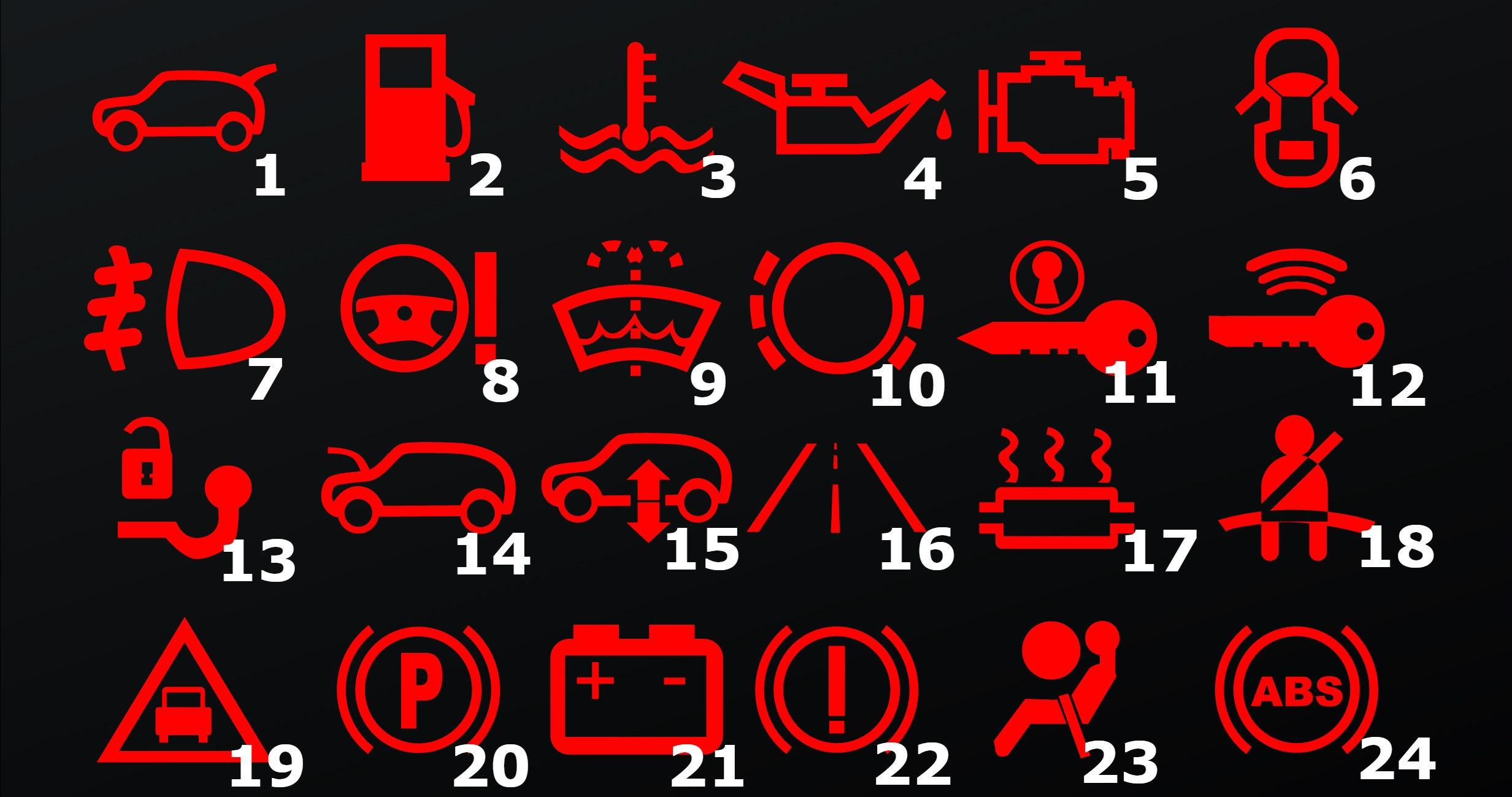 Знаки на панели приборов