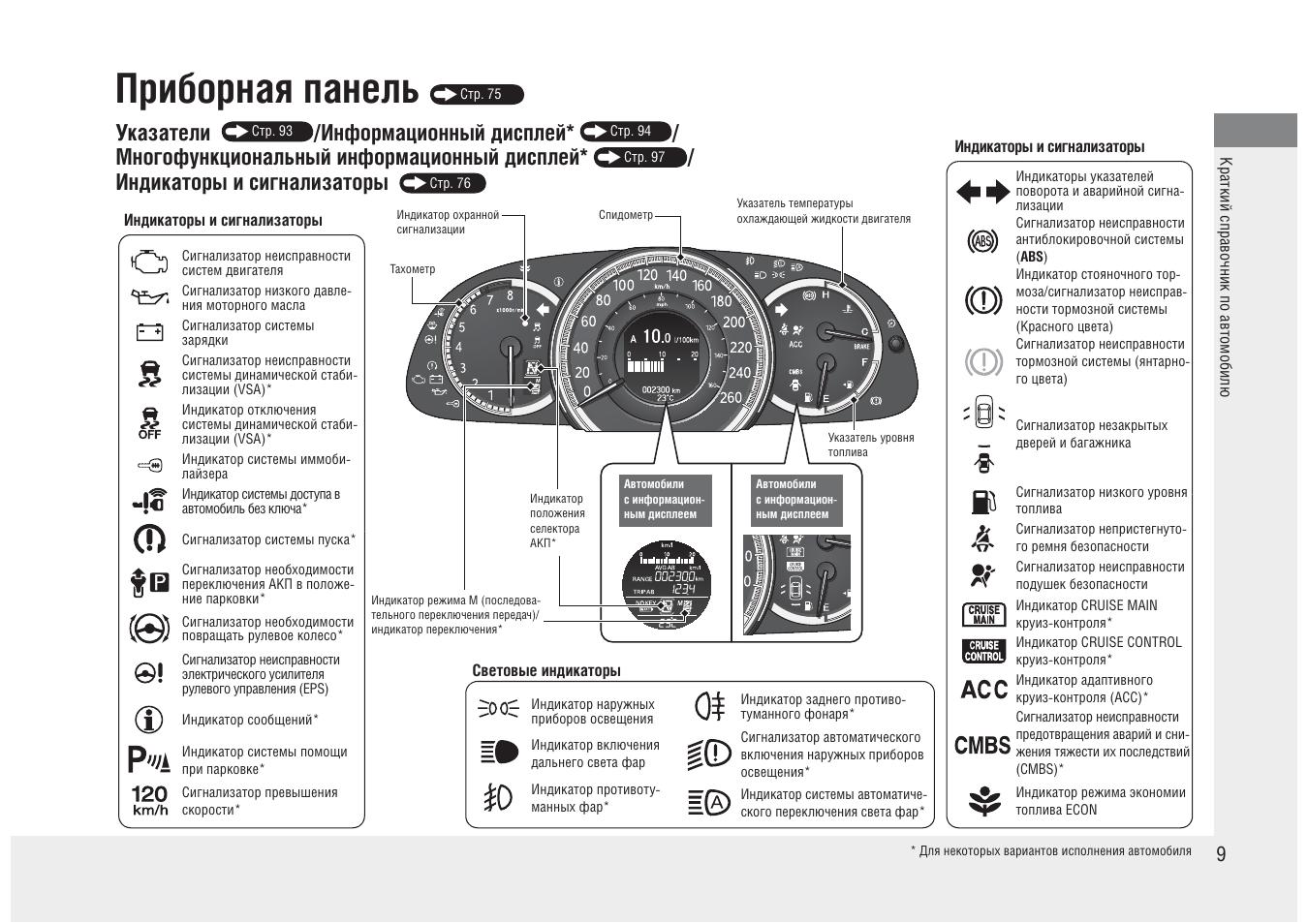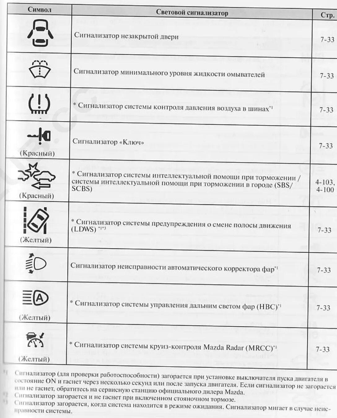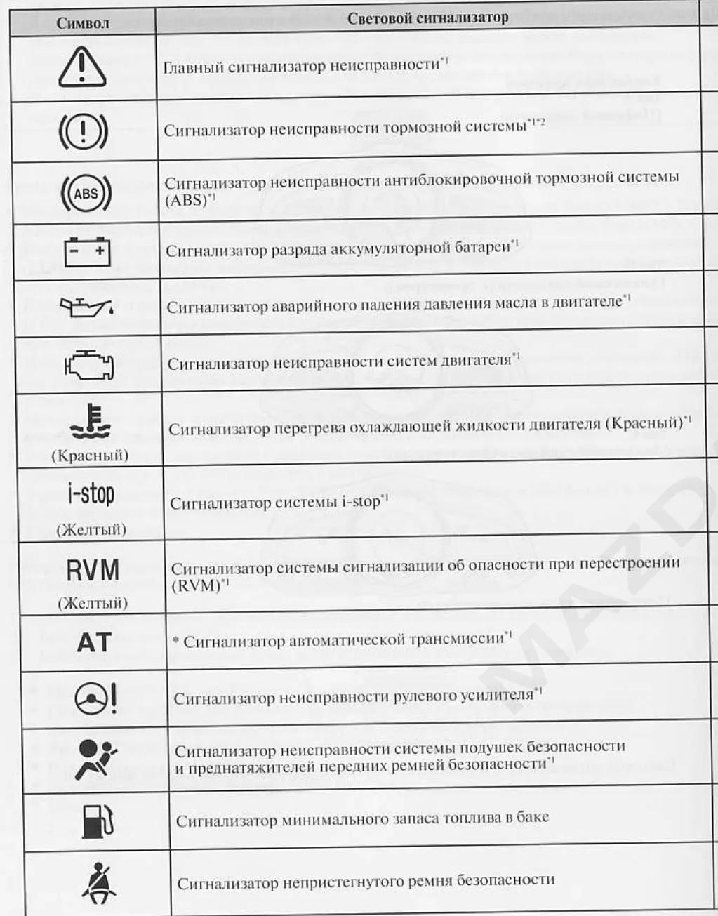 Обозначение значков на панели приборов Мазда СХ 5