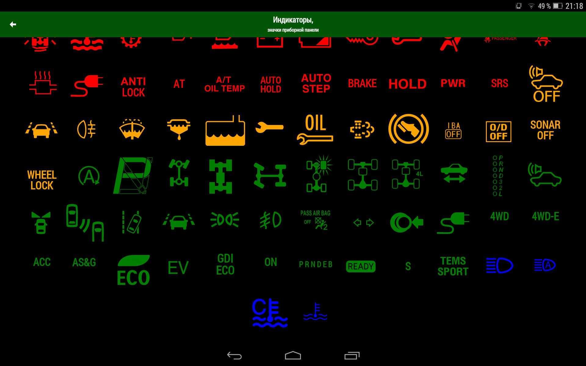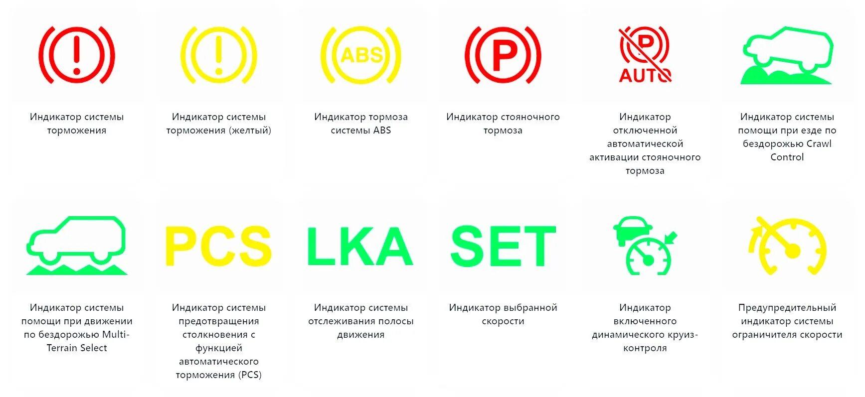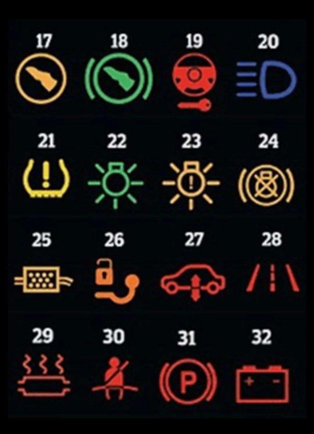 Значки на приборной панели