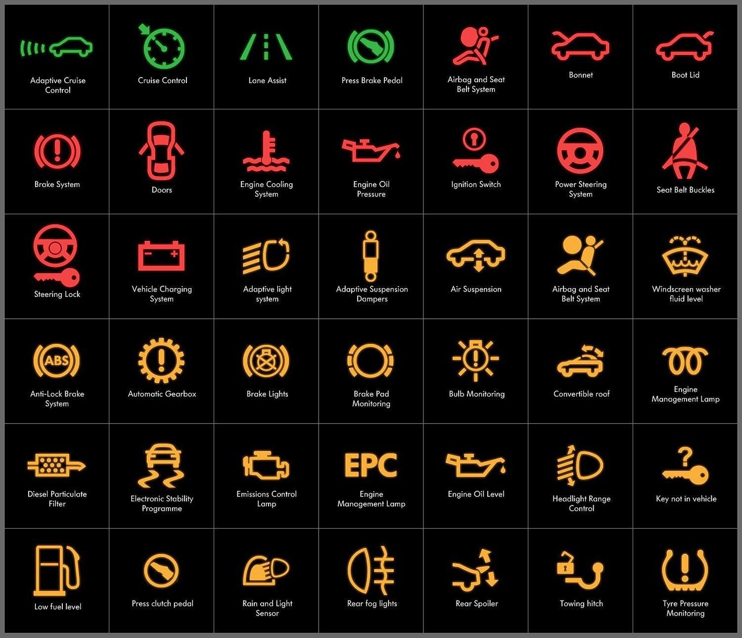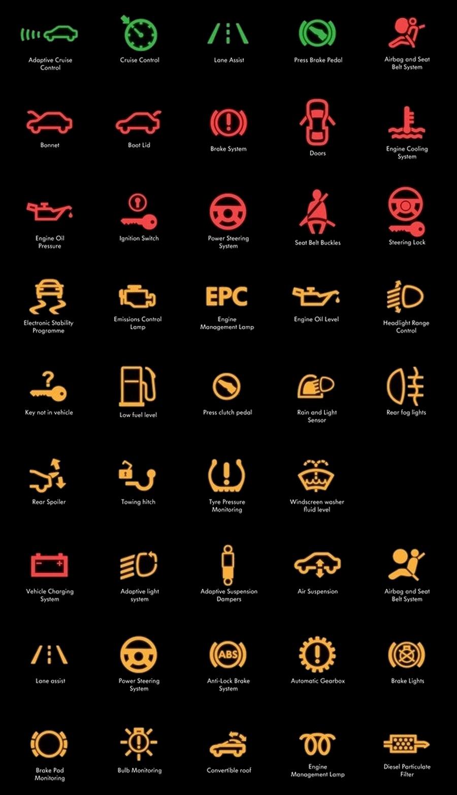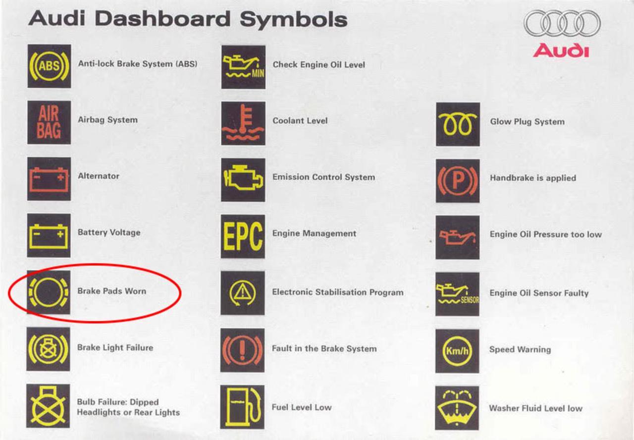 Значки неисправности на приборной панели Ауди