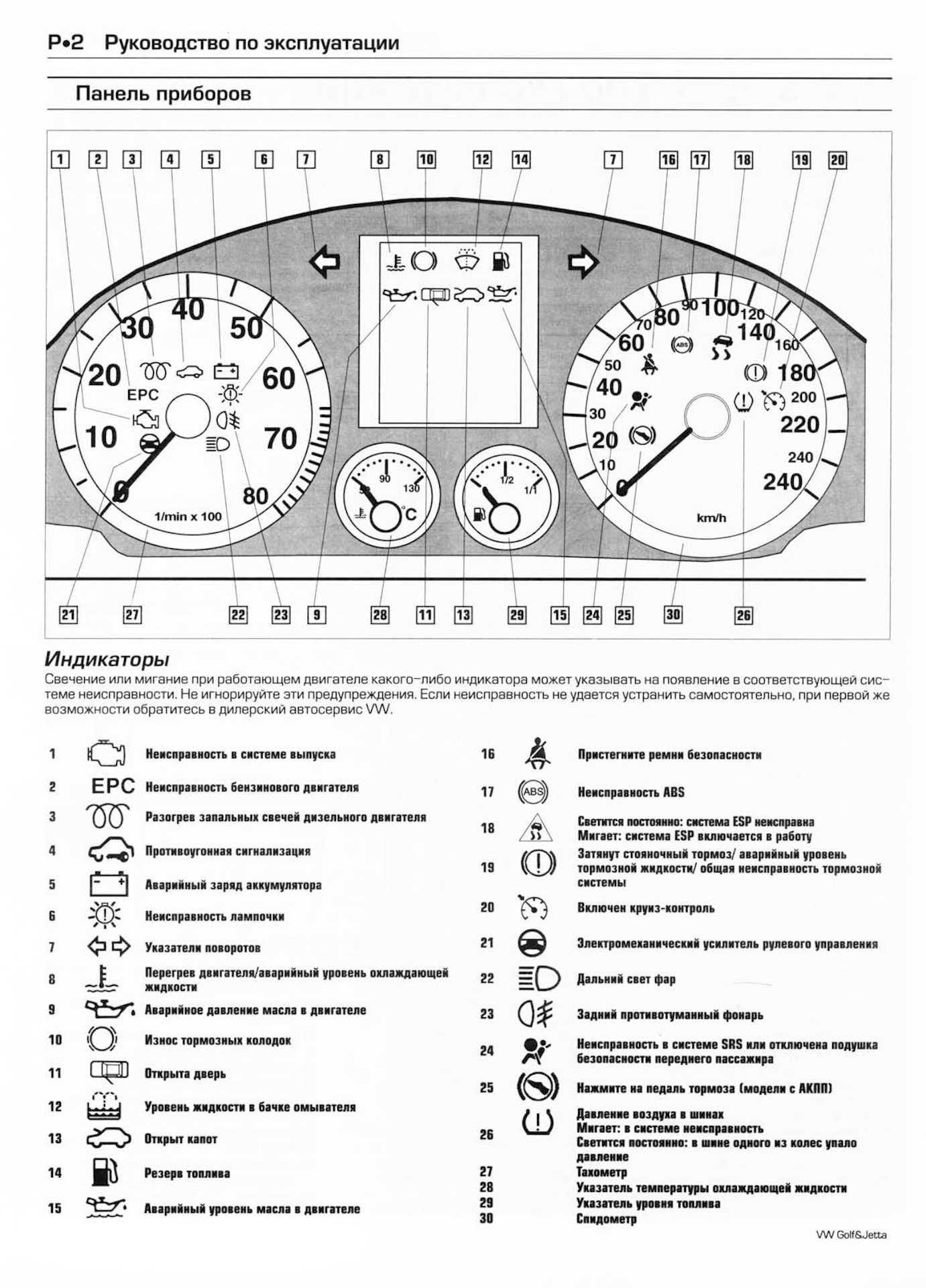 Значки на приборной панели Фольксваген гольф 2