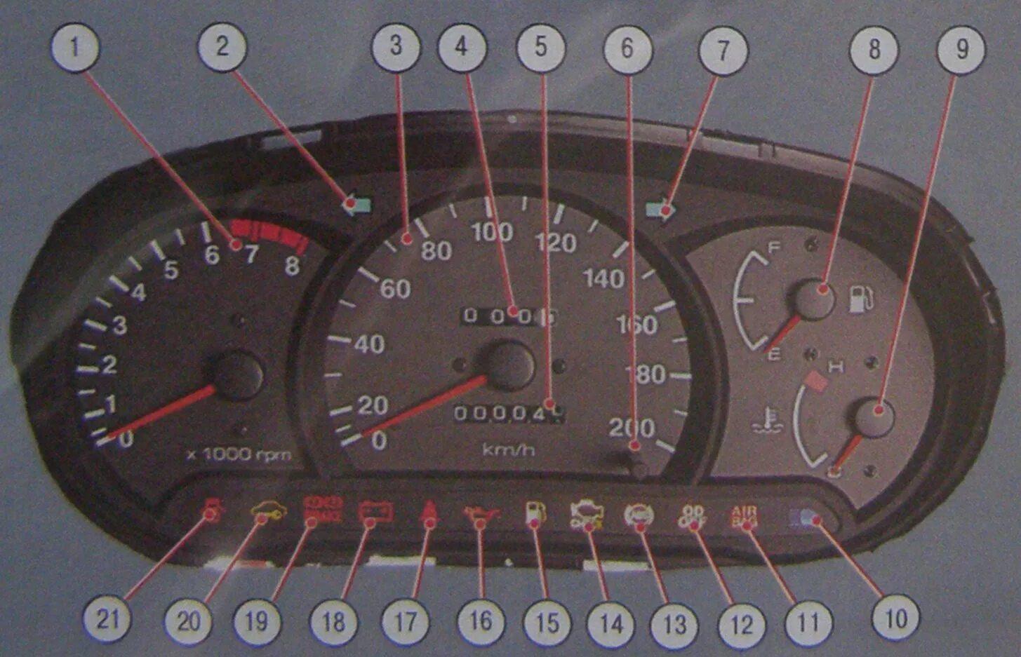 Контрольные лампы панели приборов Хендай акцент 2006