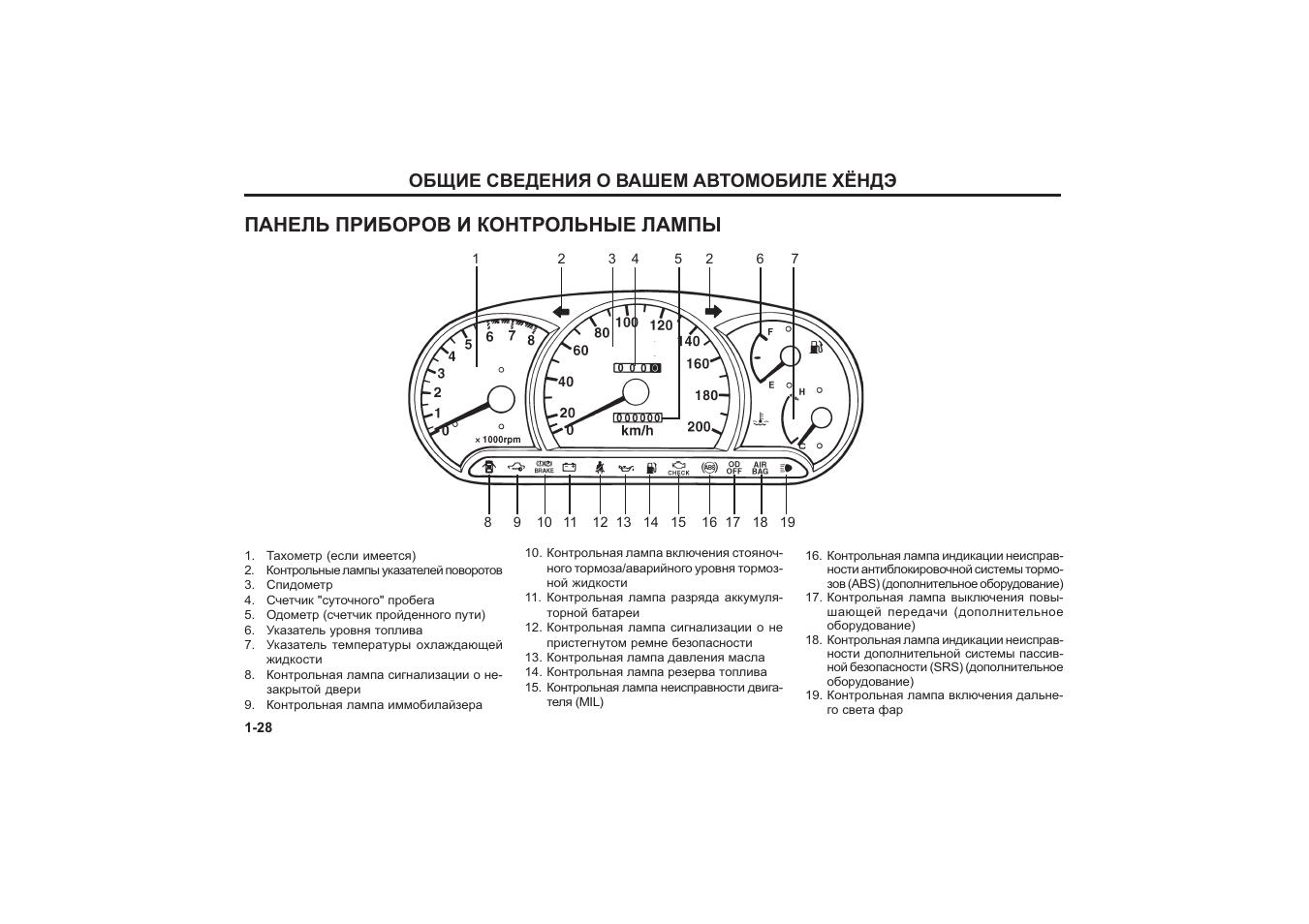 Контрольные лампочки на панели приборов Хендай акцент