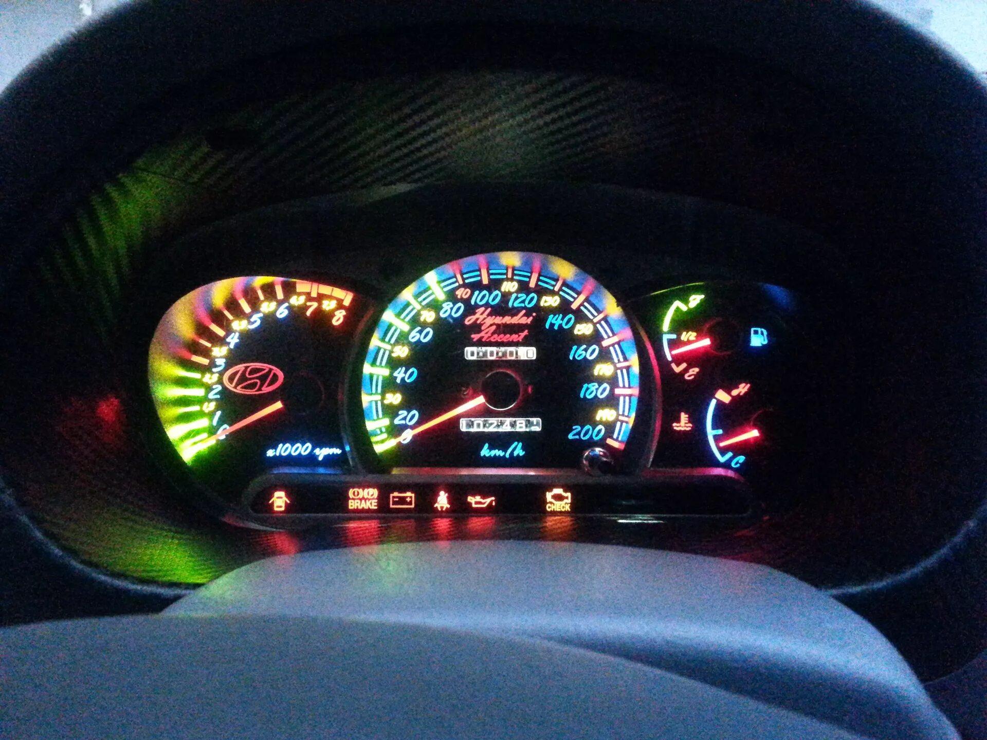 Пересвет приборной панели Hyundai Accent