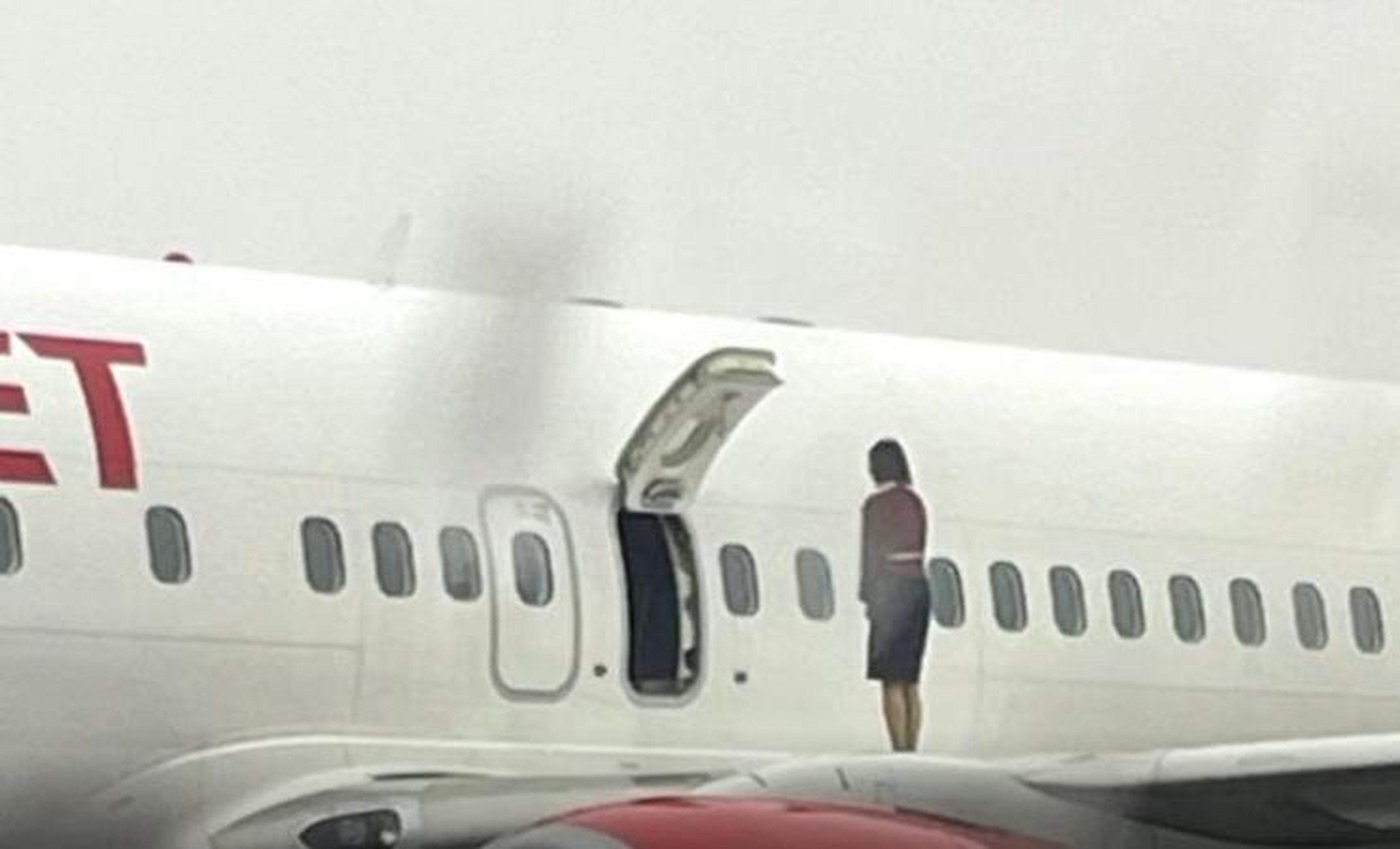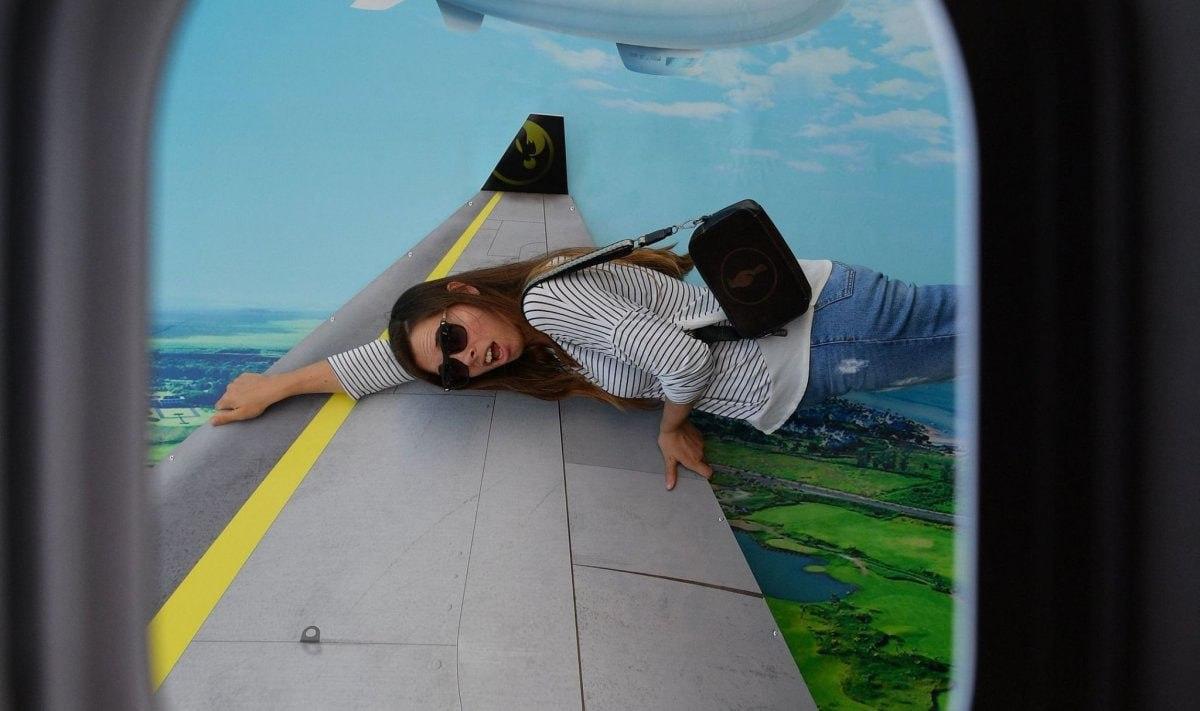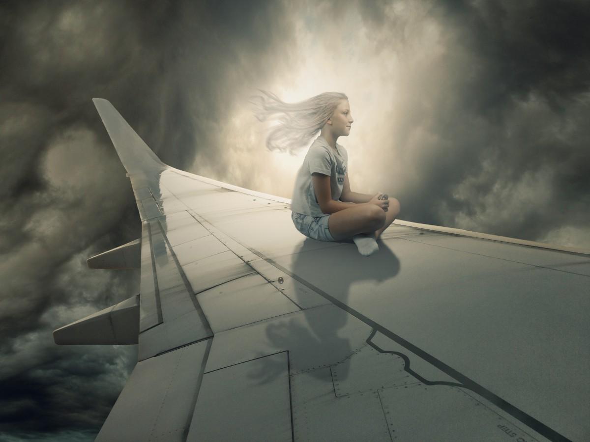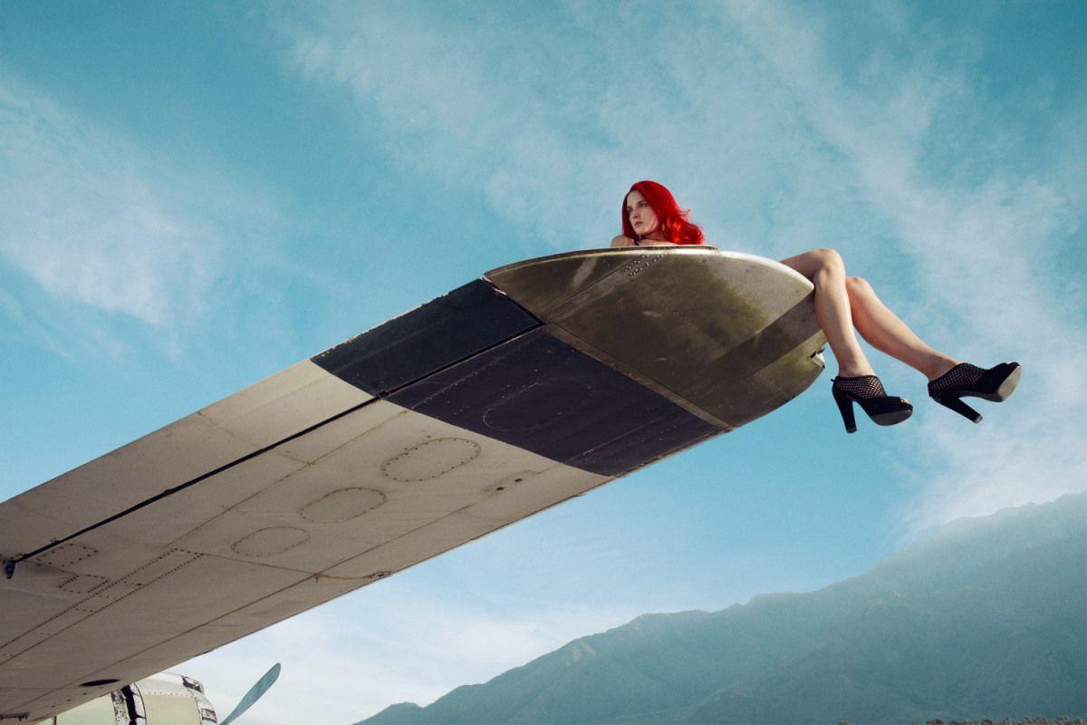 Девушка на крыле самолета