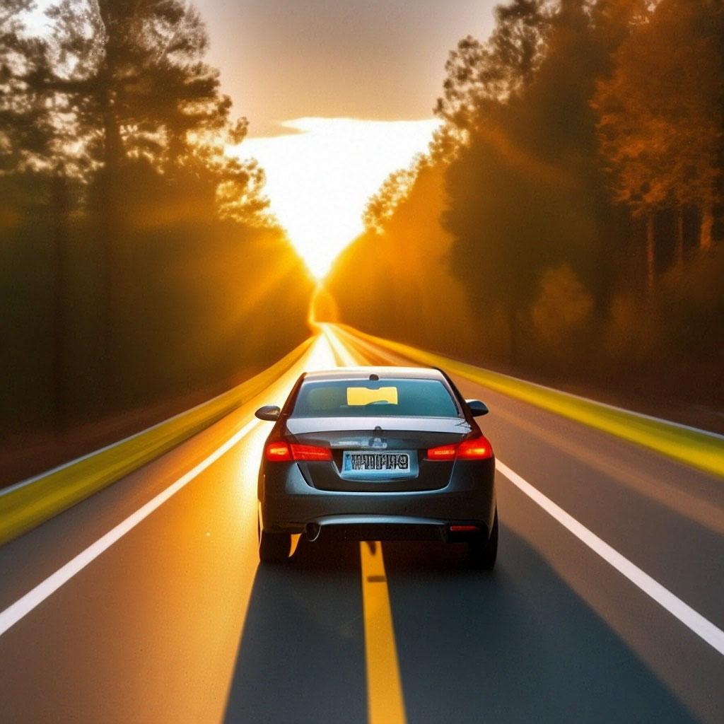 Машина на дороге сзади