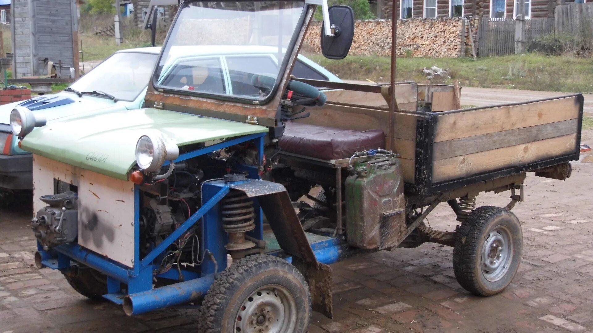 ![Самодельный трехколесный минитрактор]()