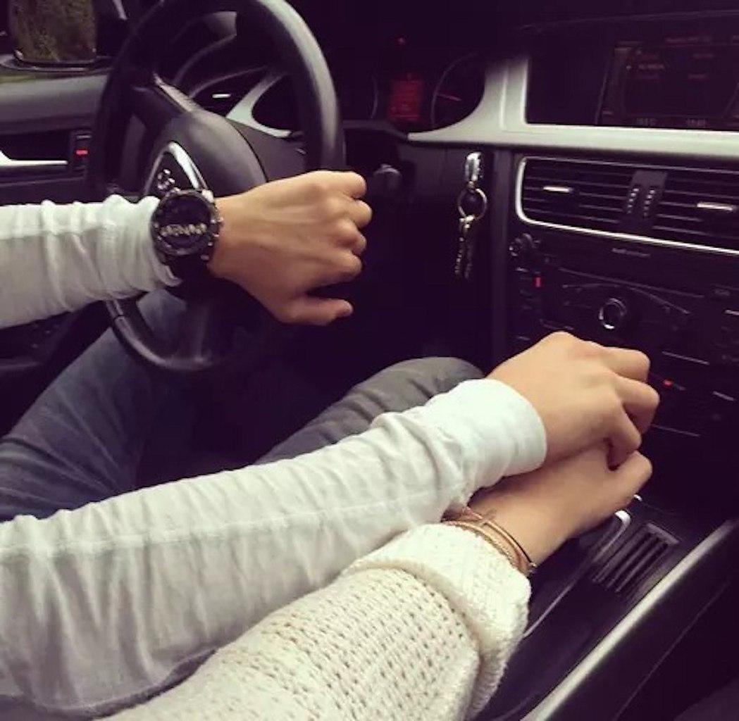 Руки влюбленных в машине