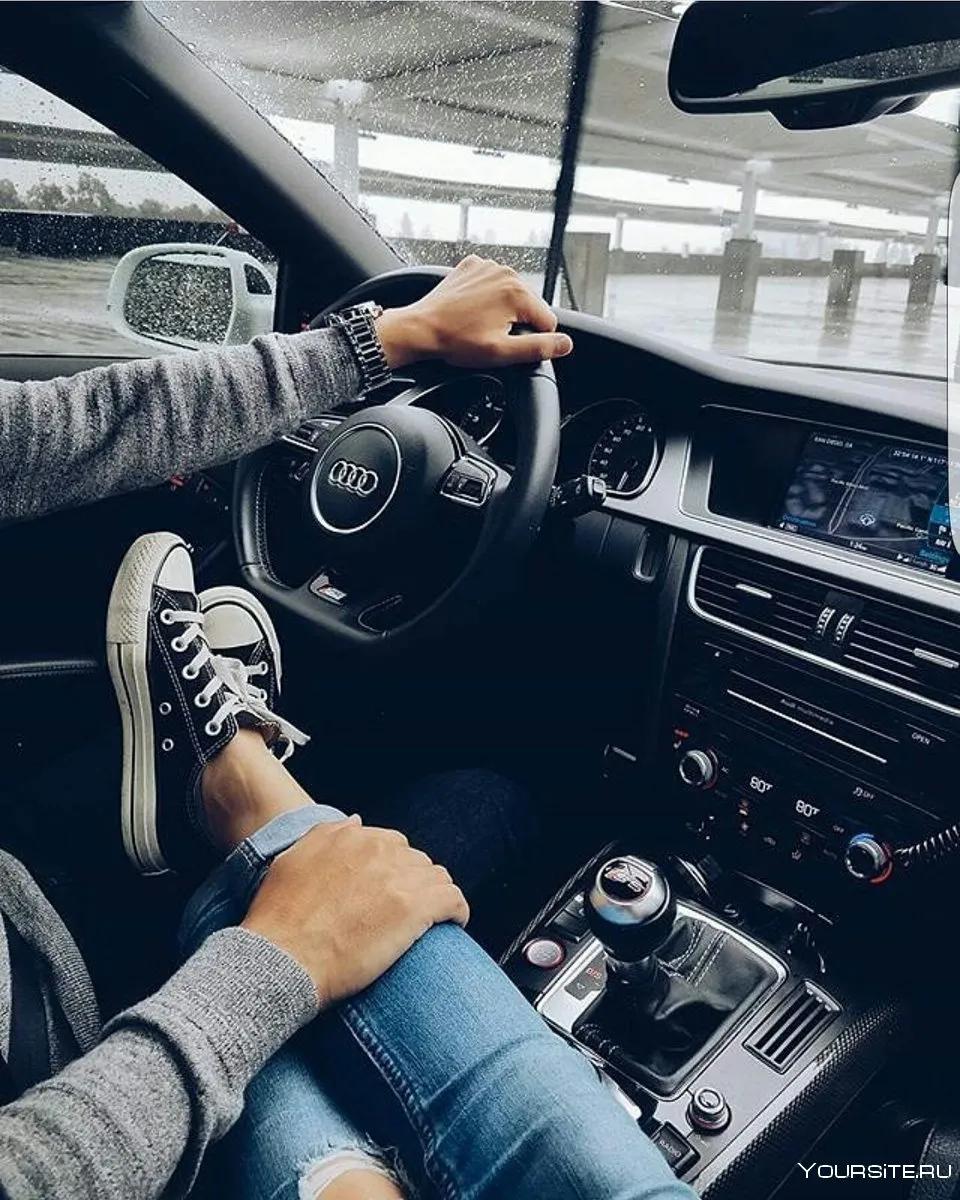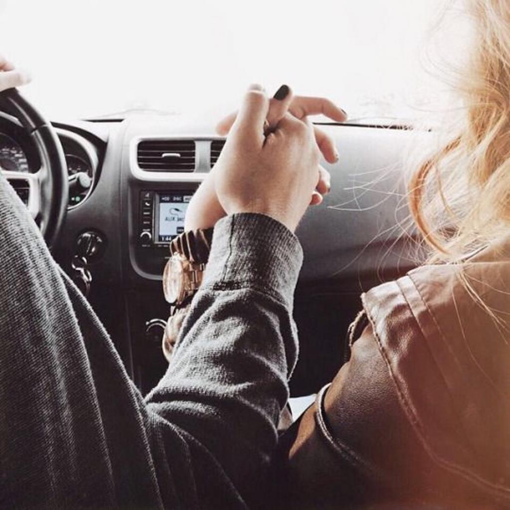 Рука в руке в машине