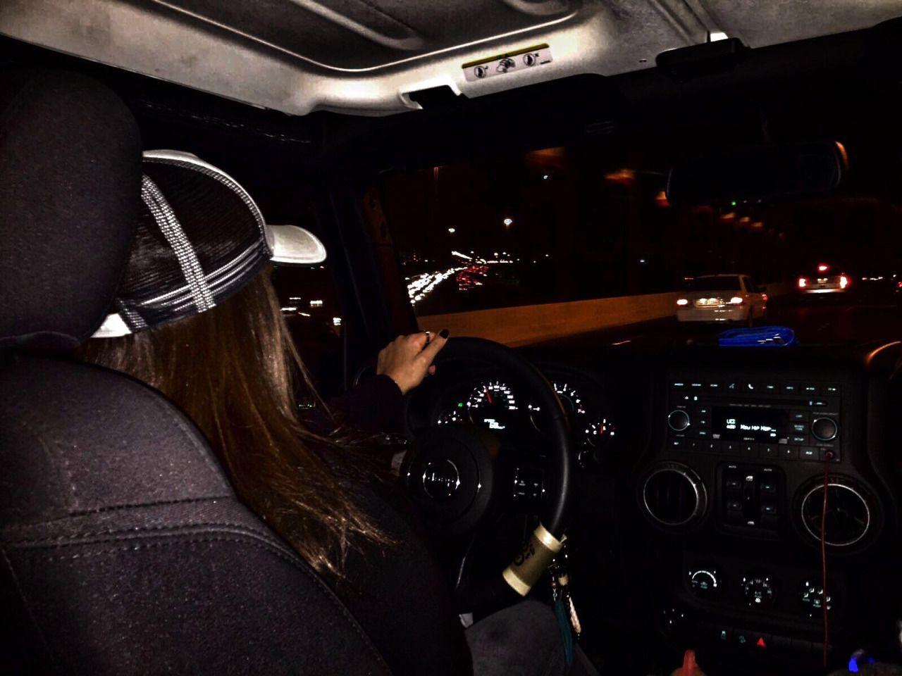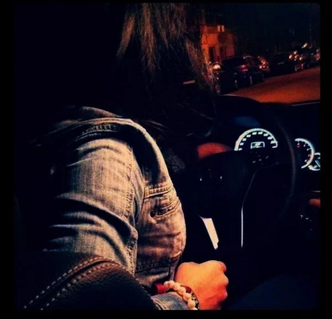 Девушка за рулем ночью