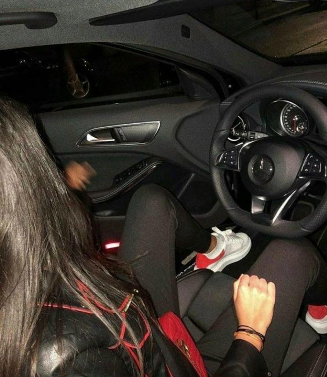 Девушка в машине ночью