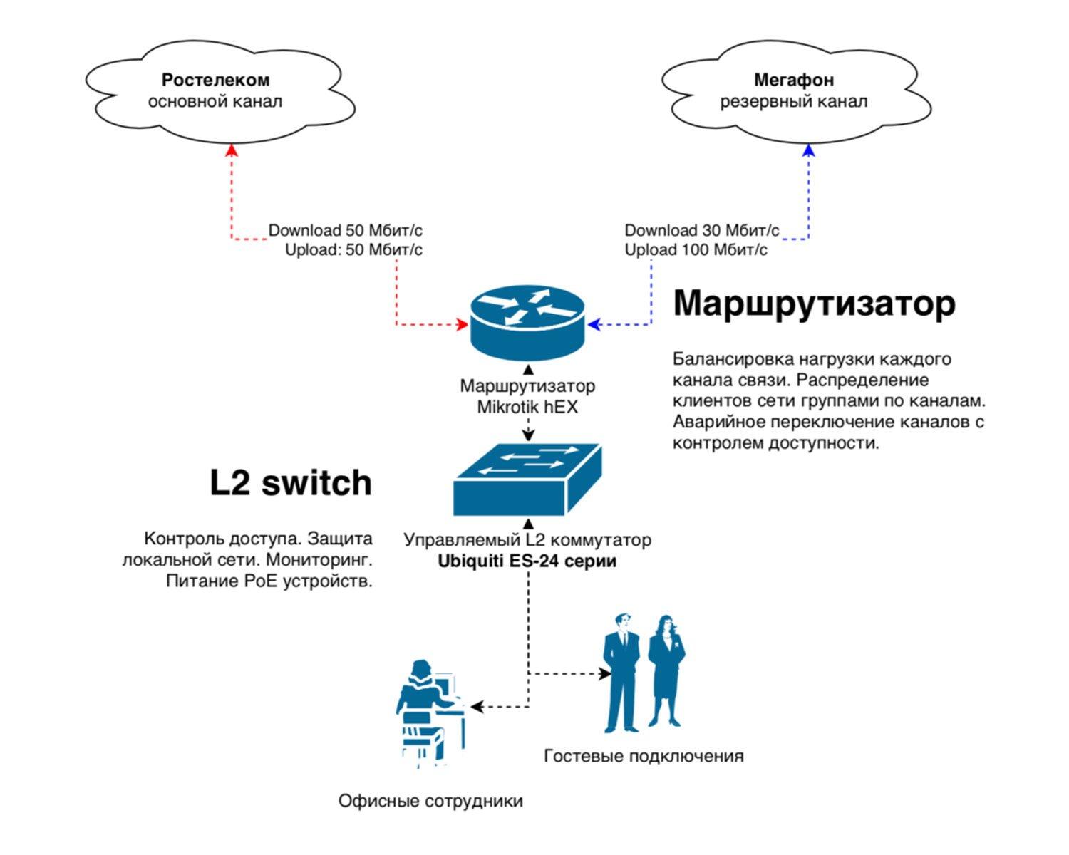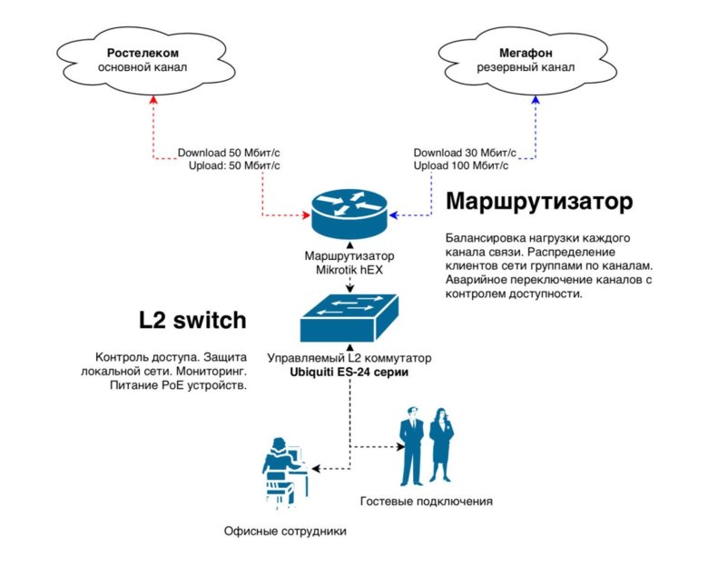 Схема организации связи сети передачи данных