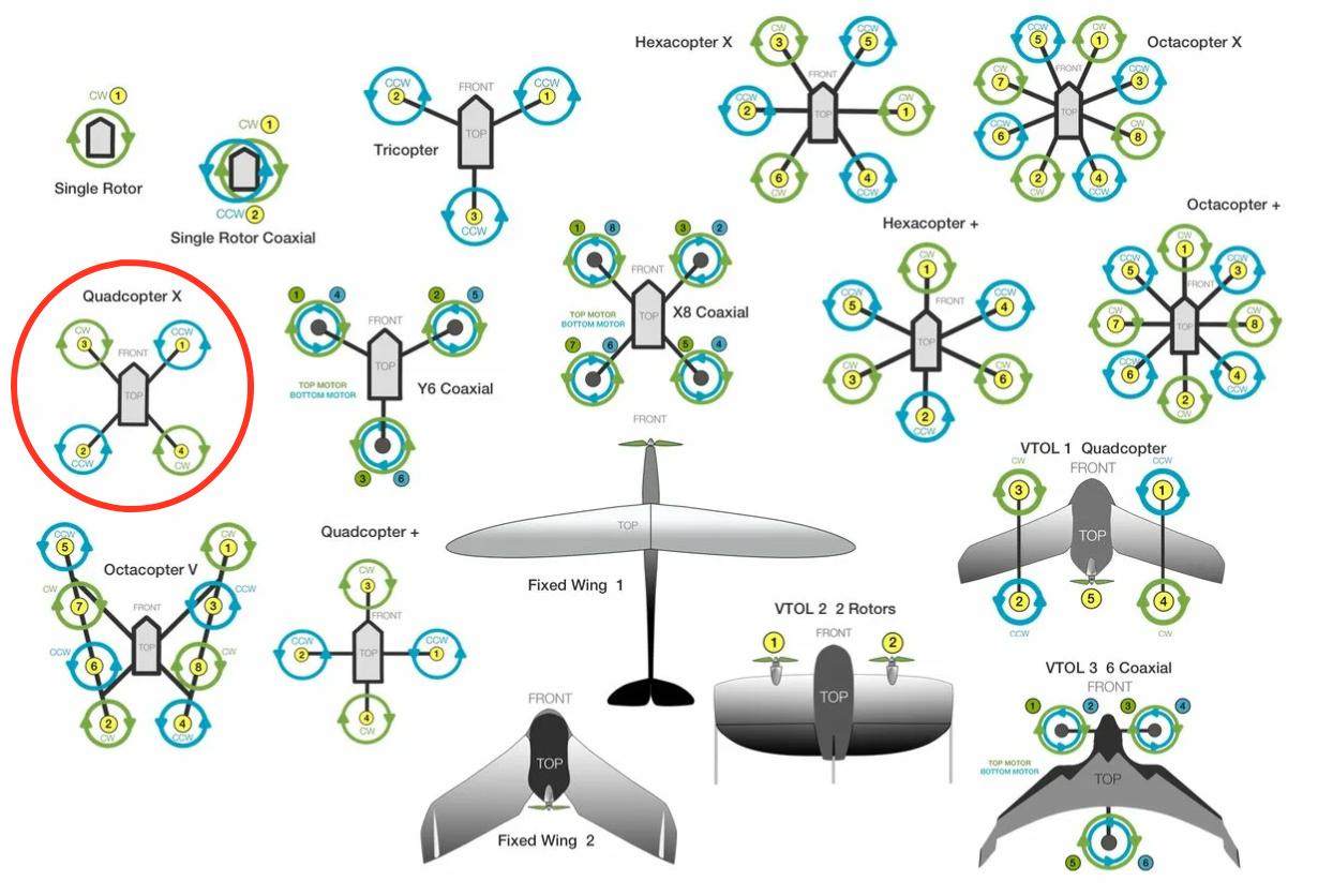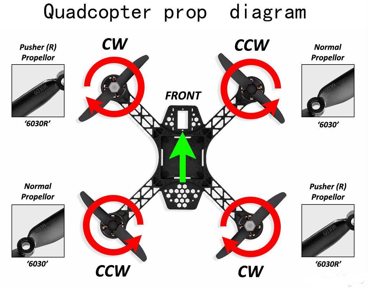 Схема вращения пропеллеров квадрокоптера