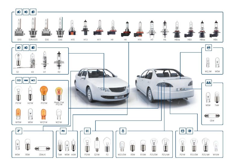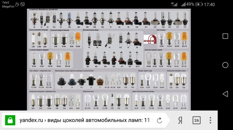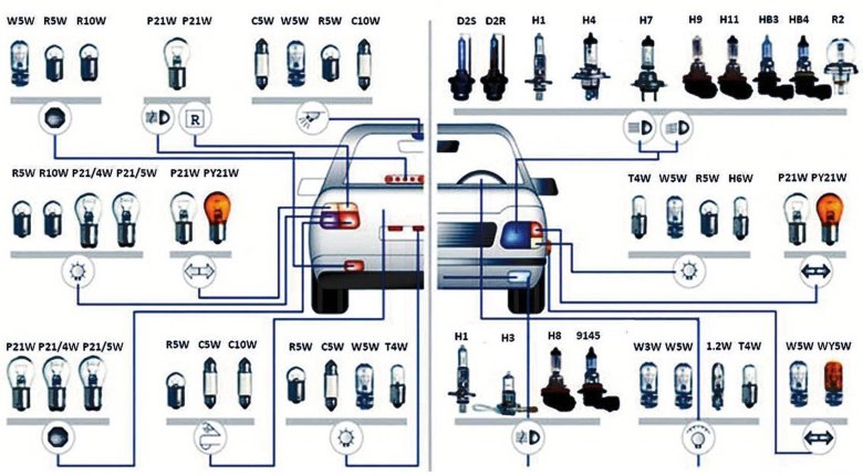 Автолампы цоколи маркировка