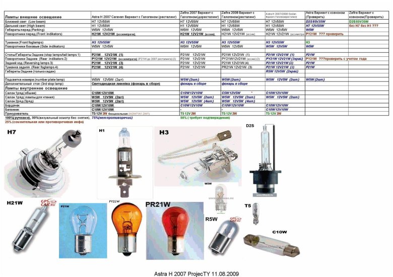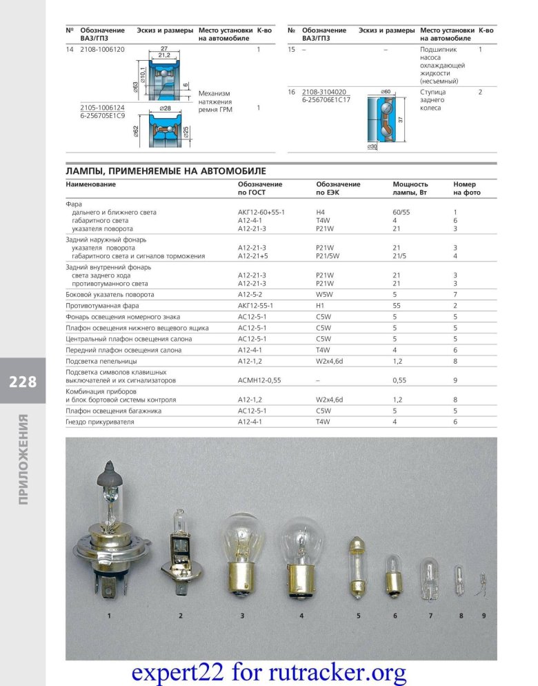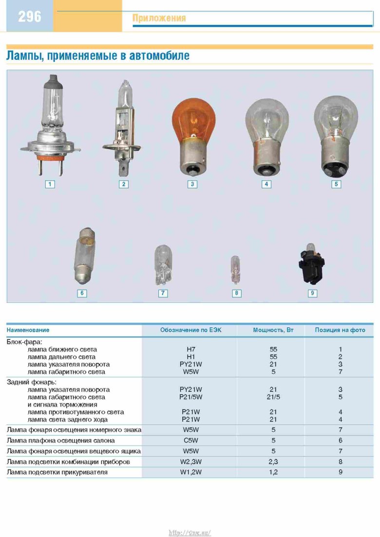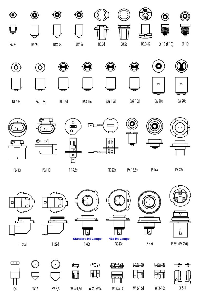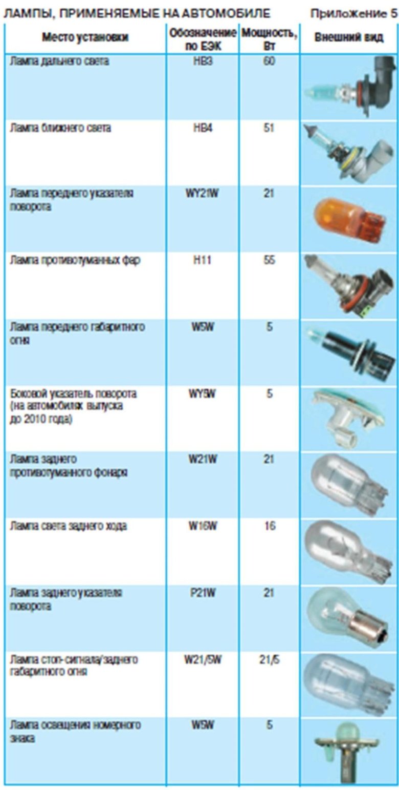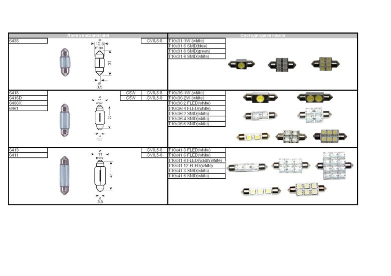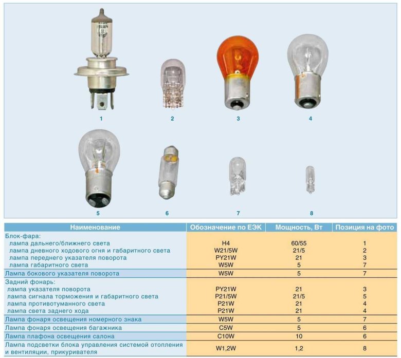 Цоколь автомобильных ламп таблица