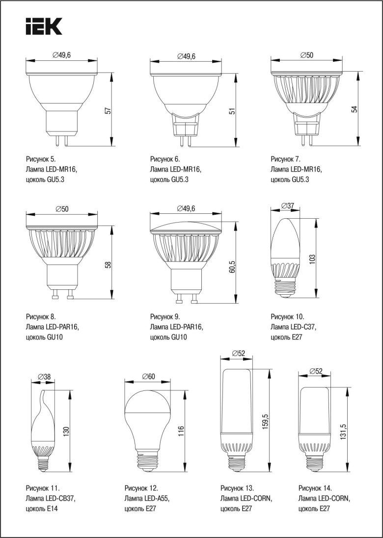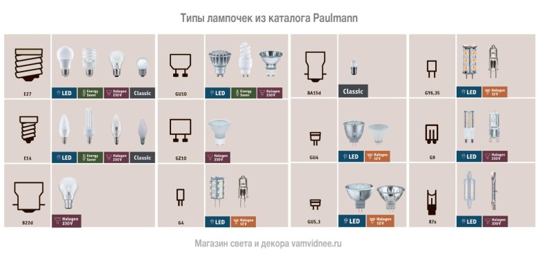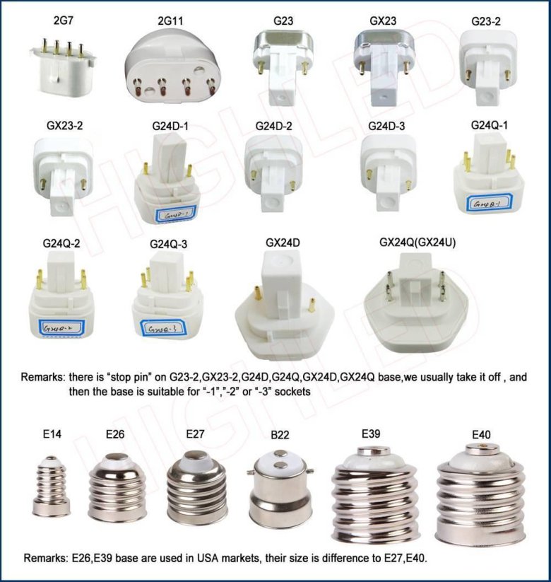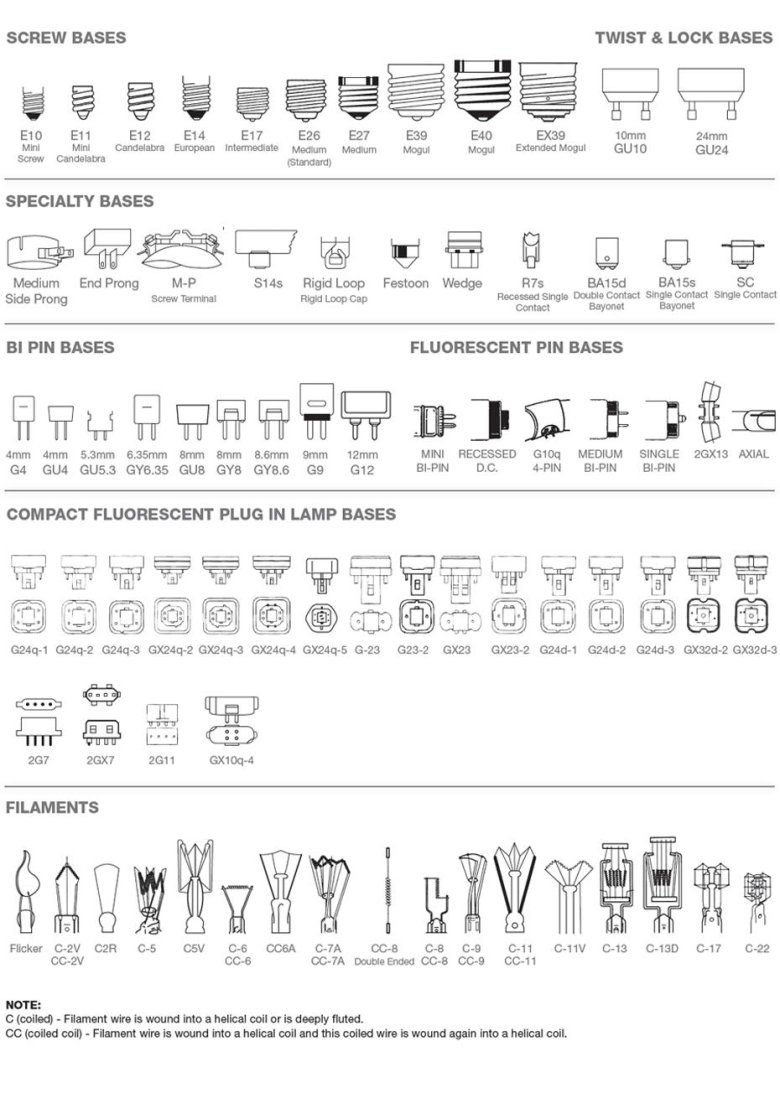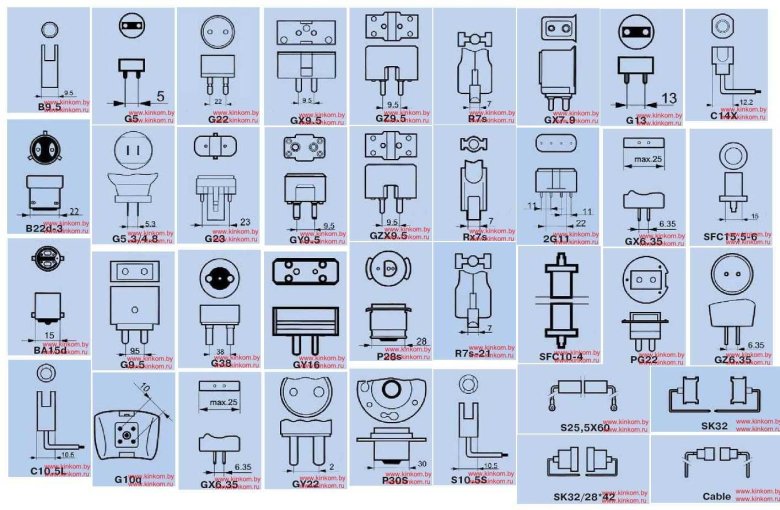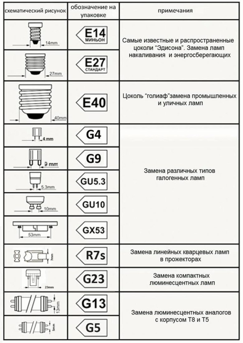 Типы цоколей светодиодных ламп