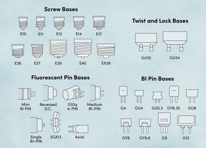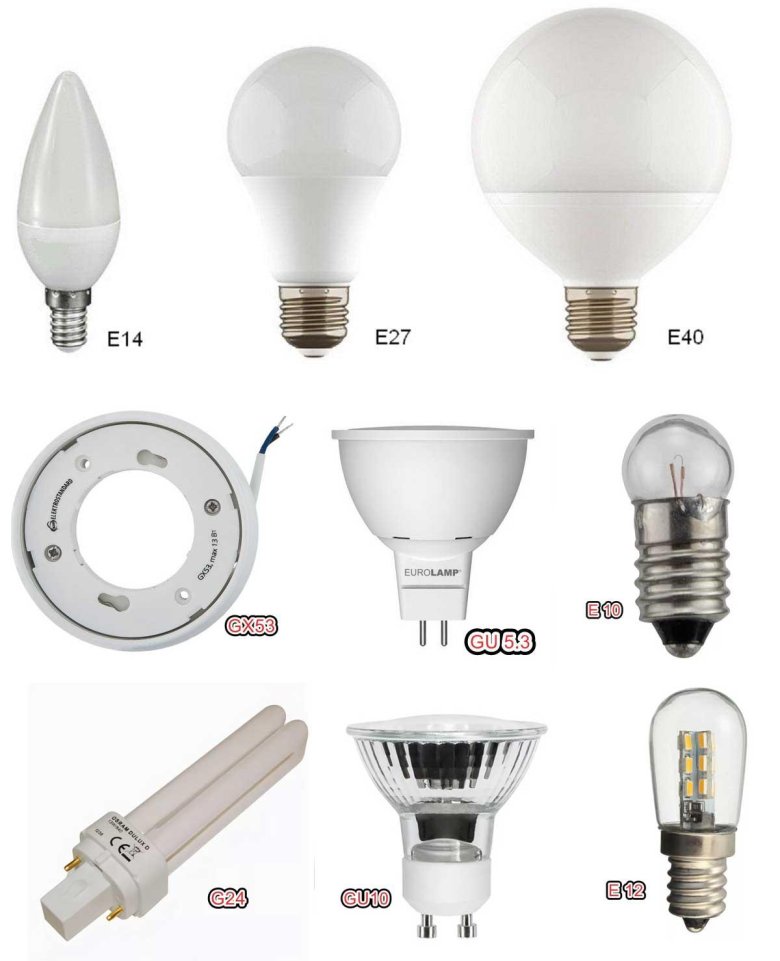 Виды патронов для ламп