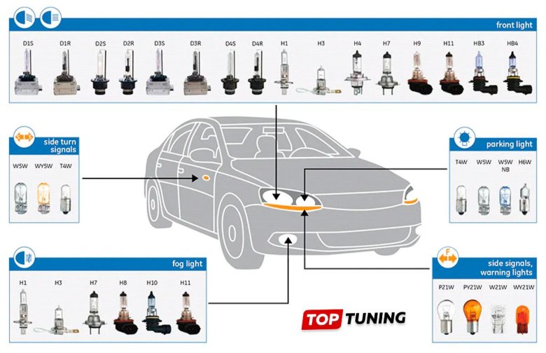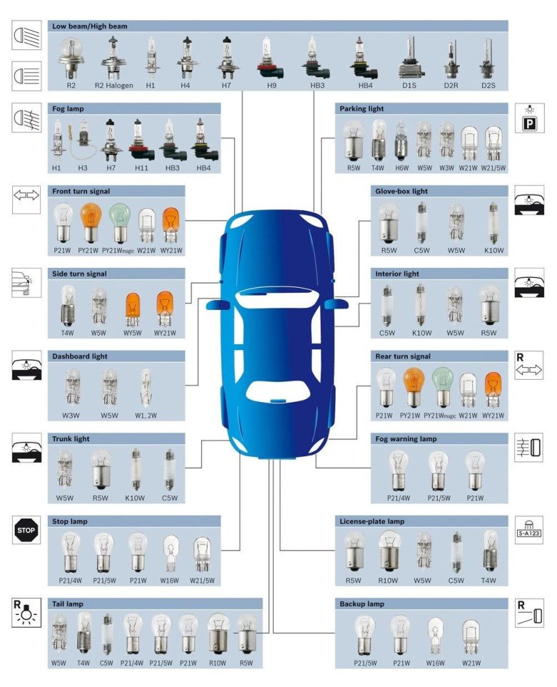 Типы ламп автомобильных