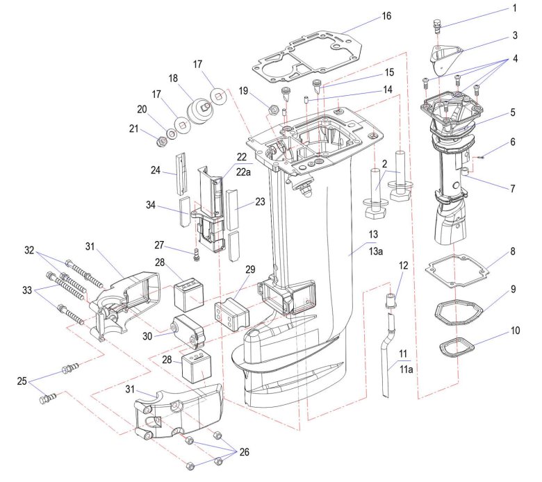 Дейдвуд для двухтактного лодочного мотора tohatsu