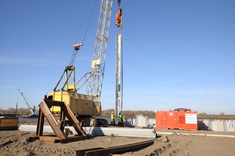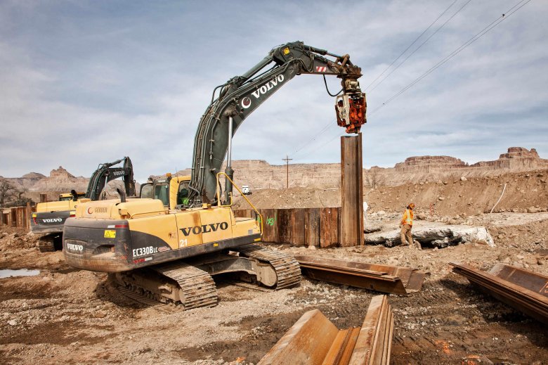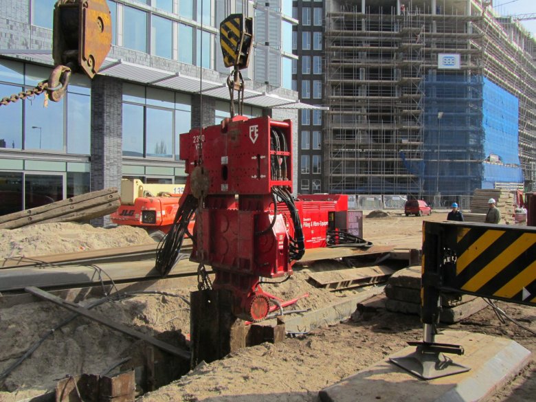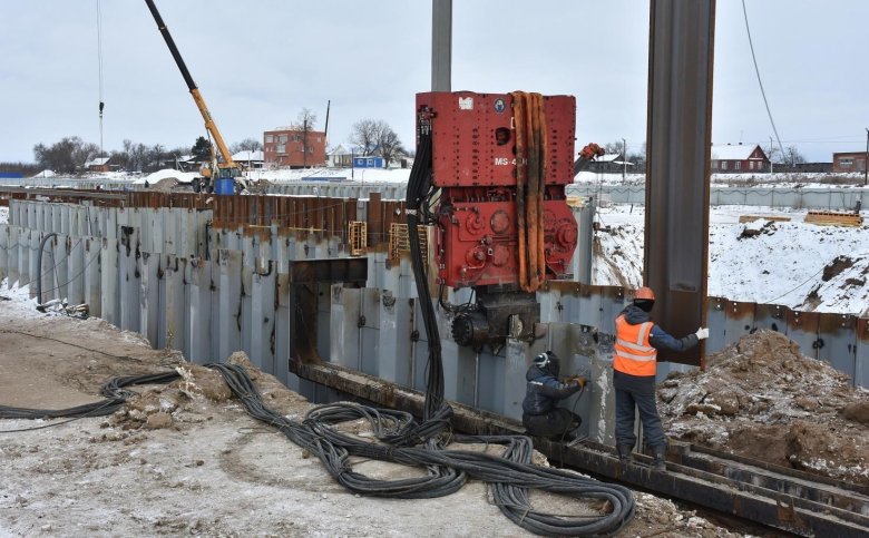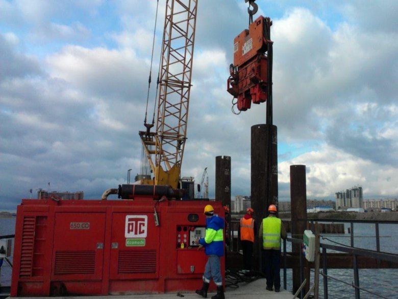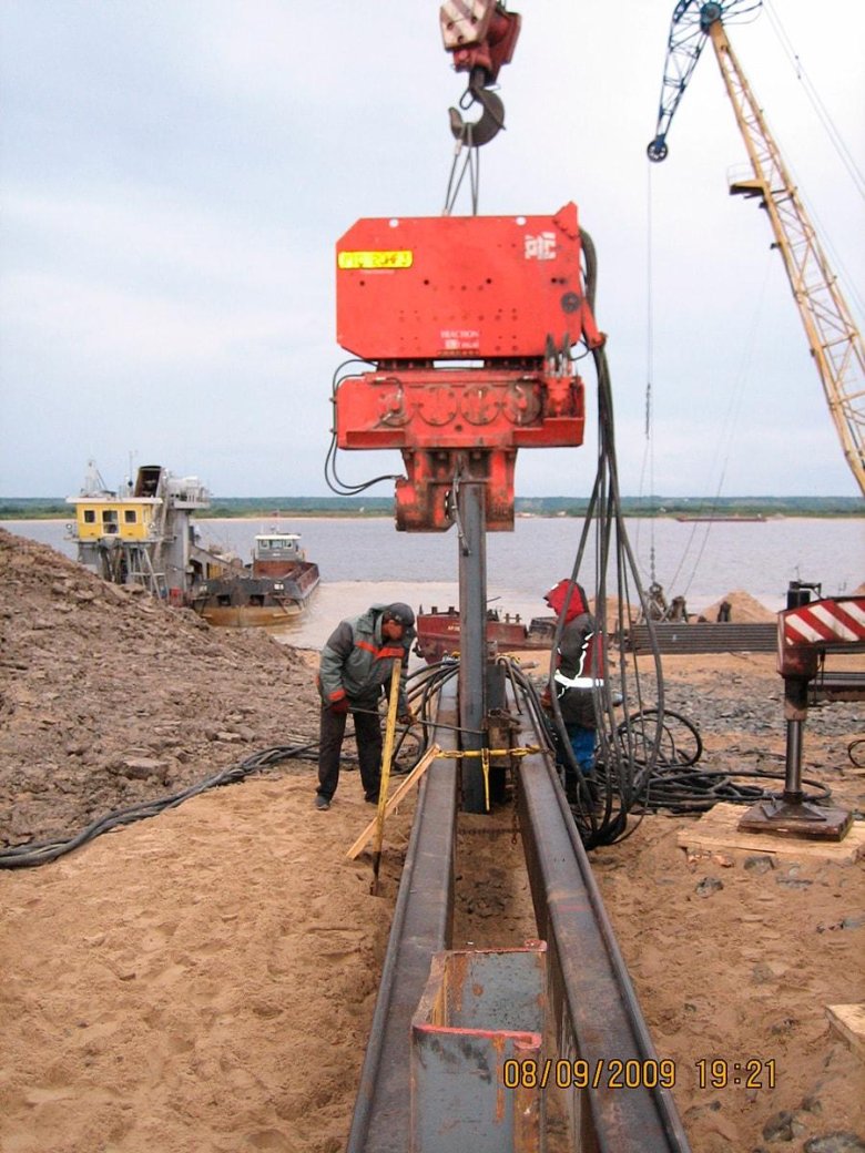 Погружение шпунта ларсена вибропогружателем