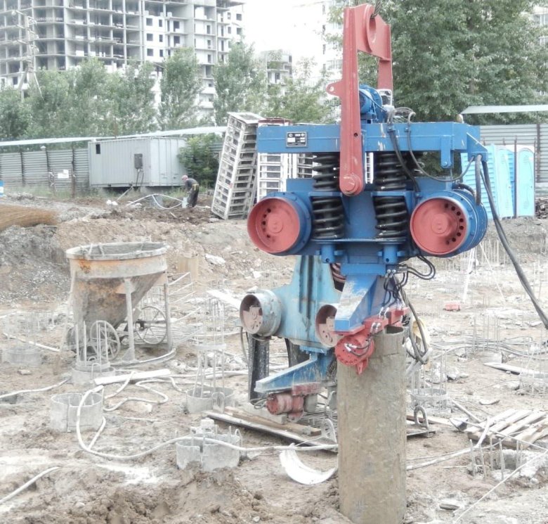 Забивка свай вибропогружателем