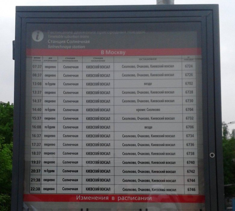 Расписание электричек киевский вокзал